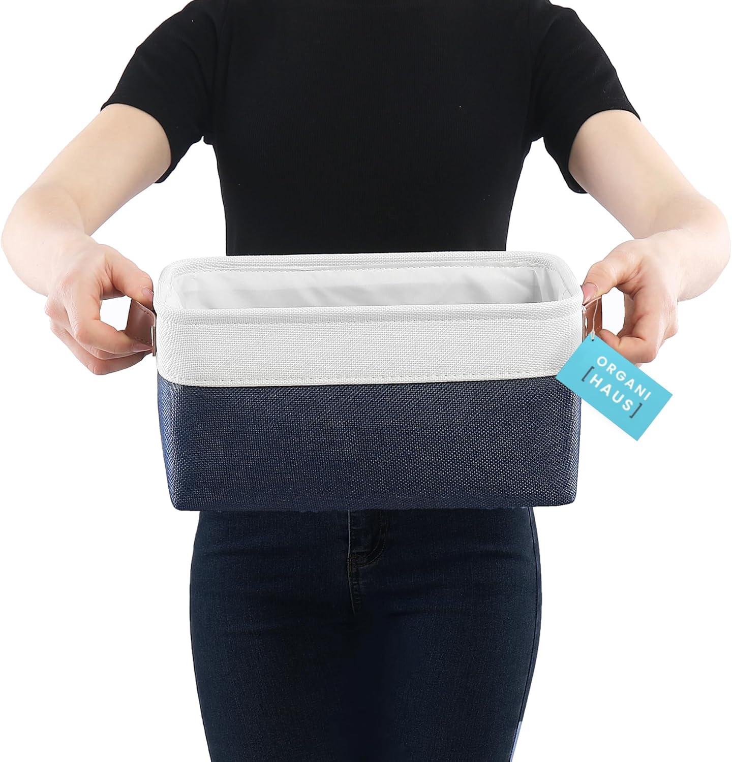 OrganiHaus Small Fabric Storage Baskets for Shelves 6 Pack, 12x8in Closet Storage Bins for Shelves, Cloth Baskets for Organizing, Linen Closet Organizers, Fabric Basket, Navy Blue/White