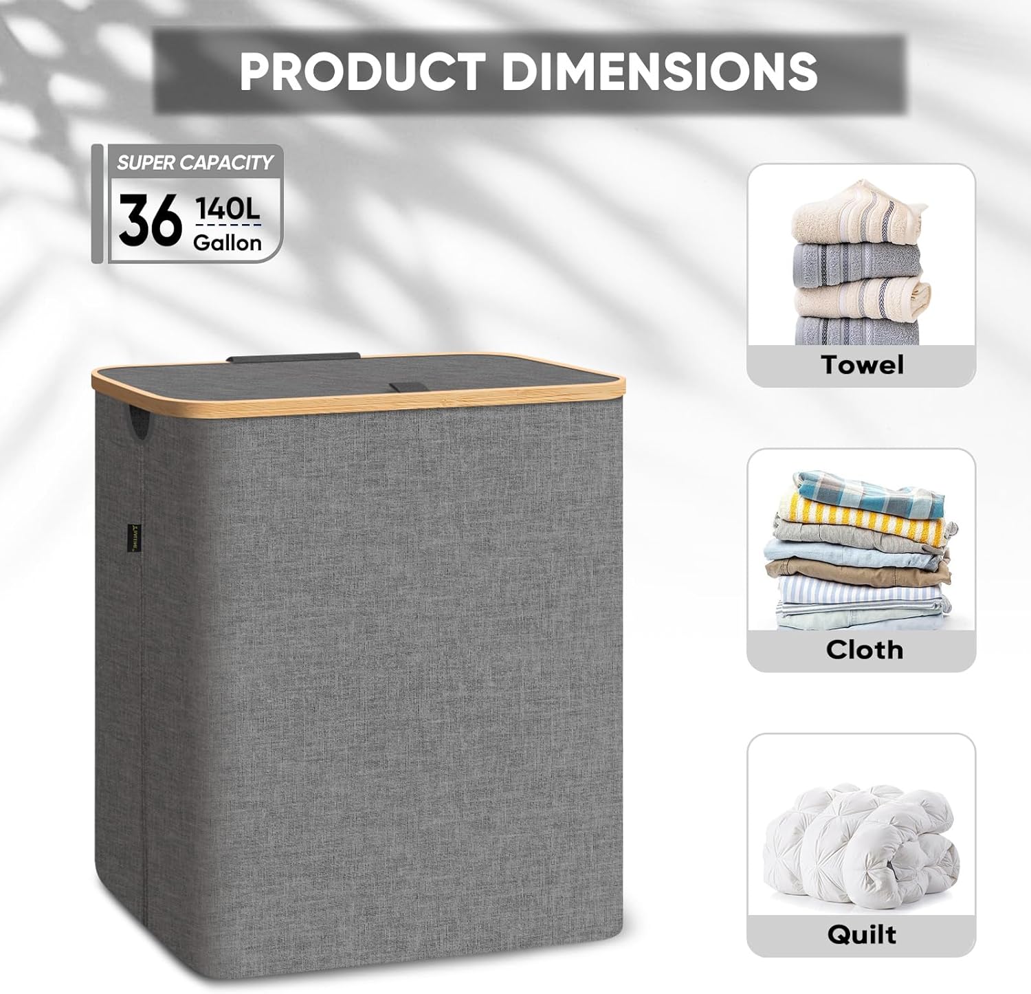 - [AMPLE CAPACITY AND EASY ACCESS] With 26 Gallon/36 Gallon (100 L/140 L) large size option, the hampers for laundry provide ample capacity to hold all your dirty clothes, towels, bedding, and more. The lightweight lid is easy to open and close, providing quick and convenient access to your laundry