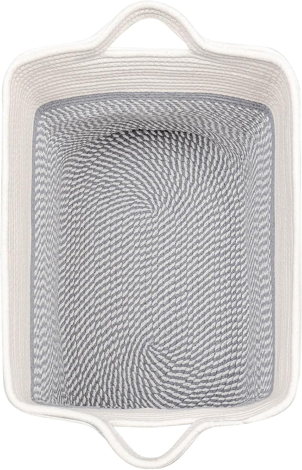 Storage Baskets for Clothes Fabric Cotton Rope Storage Basket with Handles, Decorative Woven Basket for Living Room,Closet Organizer Blankets, and 2bags (White/Gray, L14×W11×H14)