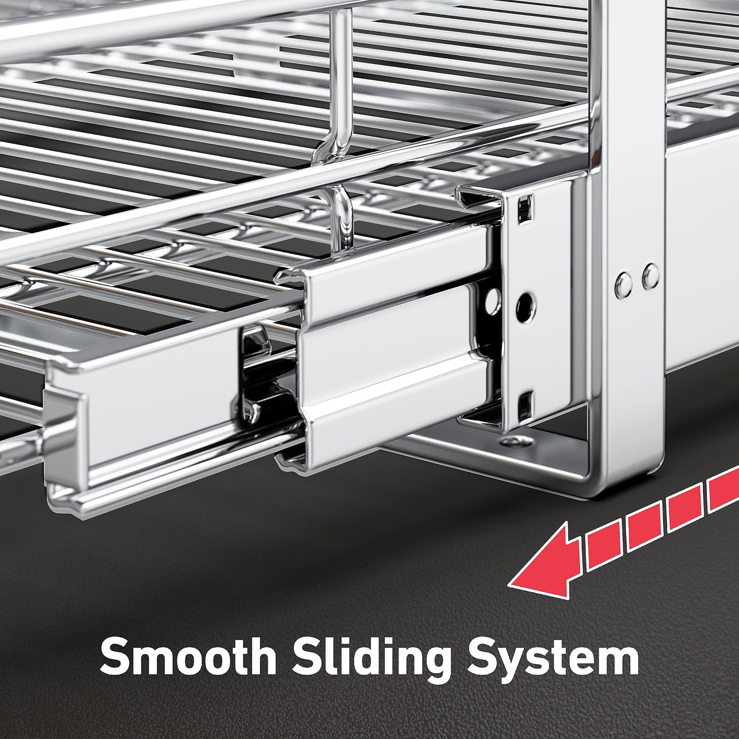 - 【Unique Design】Mount Walker 2 tier pull out cabinet organizer is double sliding, upward hook connecttion wire basket design make it easy assemble and more durable, full extension ball-bearing 3 section slide out slides let you easy access all the items. The 4 connecting rods are solid material, ball bearing glide system ensured a smooth and quiet sliding system every time. With full-extension slides that can support up to 100 lbs.