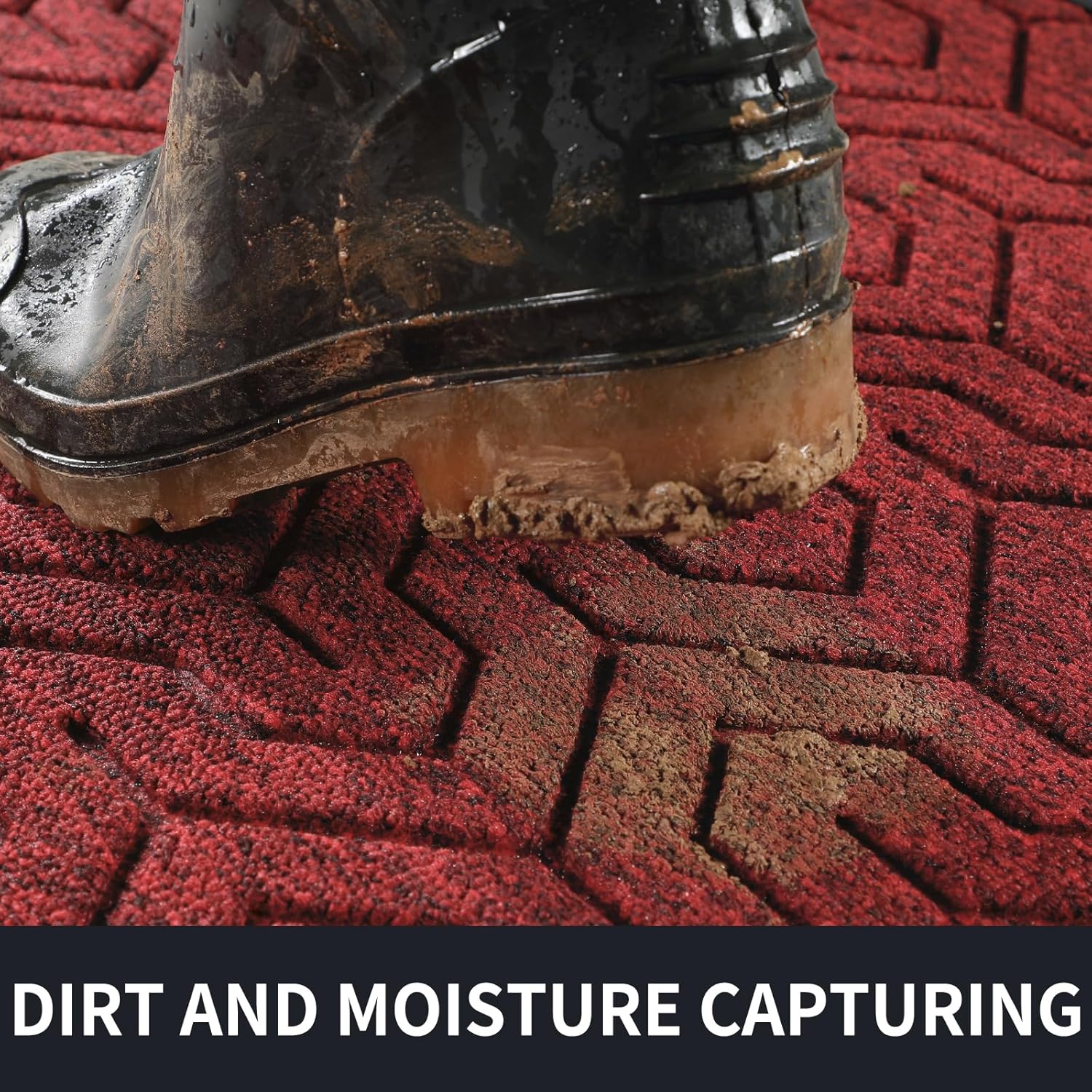 - Superior Dust Trapping & Waterproof: Featured deep Y-pattern grooves, the front door mat effectively scrapes off mud, dust and debris from shoe soles, keeping dirt outside your home. Made of high-quality polypropylene, this mat is waterproof and holds up perfectly even after rain. Its strong structure withstands heavy foot traffic without losing shape or functionality