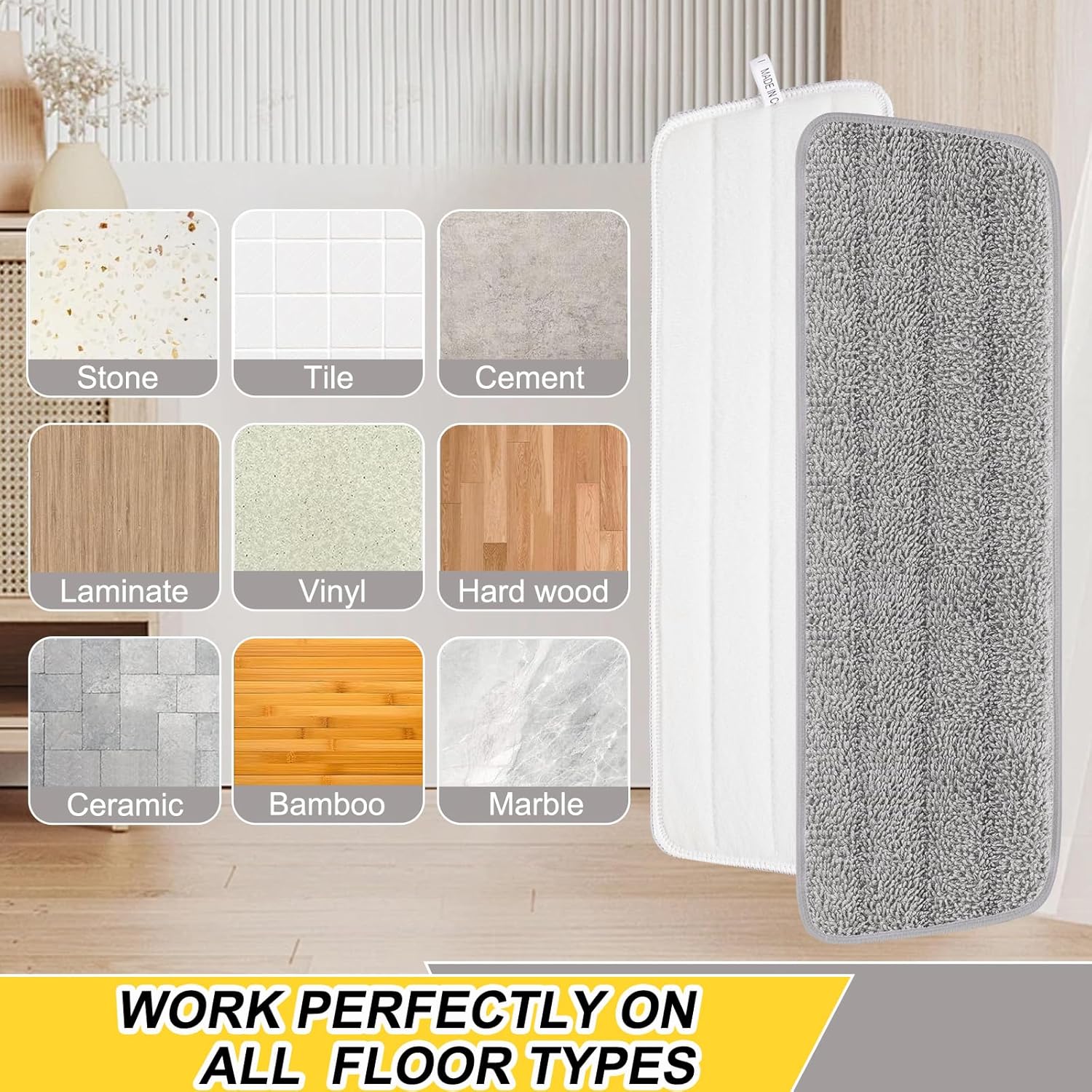 - Superfine Microfiber - Our spray mop heads adopt the high quality microfiber whose decontamination ability is further improved, fully absorb pet fur, hair, debris, dust, oil or other stubborn stain, durable and reusable.