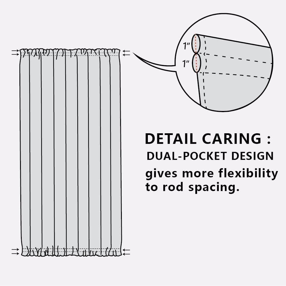 - Simple to Hang: The dual rod pockets at the top and bottom make it easy to install, 1.2” rod diameter allows the curtain a nice fit. Adjustable tie-back can control how much the light you hope to go through into your room.