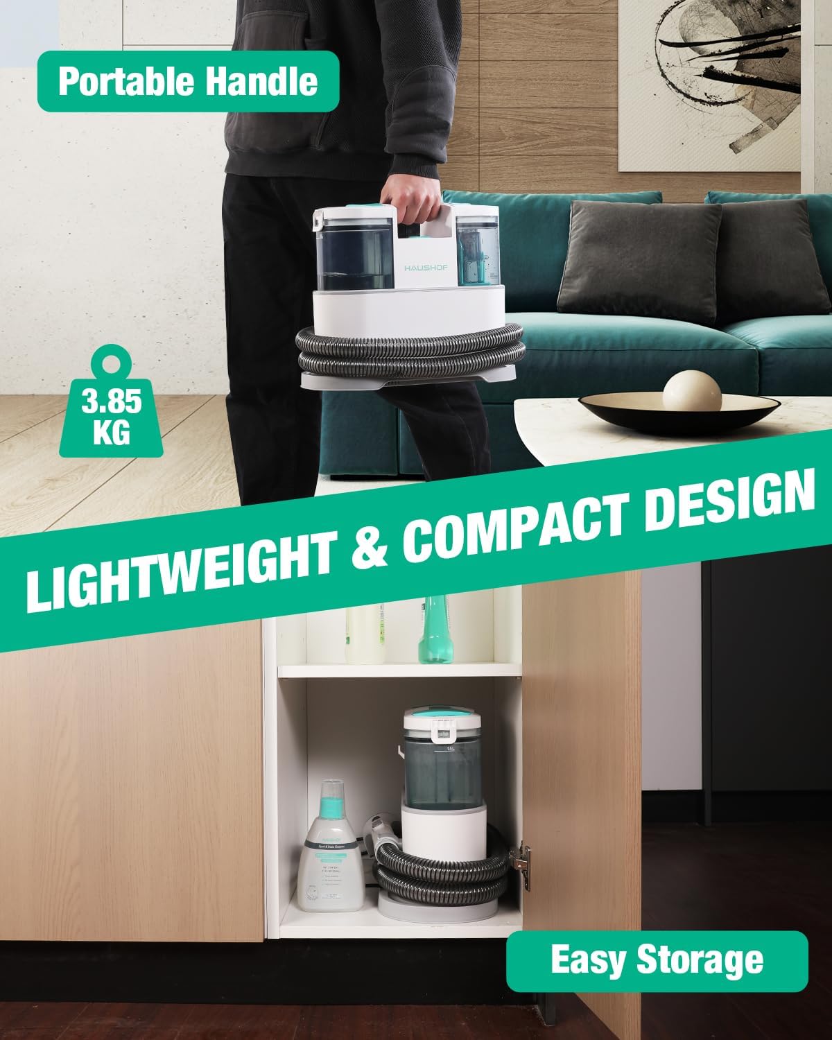HAUSHOF Portable Carpet Spot and Upholstery Cleaner, 12Kpa Lightweight Deep Couch Cleaner Machine Powerful Suction for Pet Stains, Couch, Rug, Car Seats, Narrow Spaces, Spot & Stain Cleaner Included