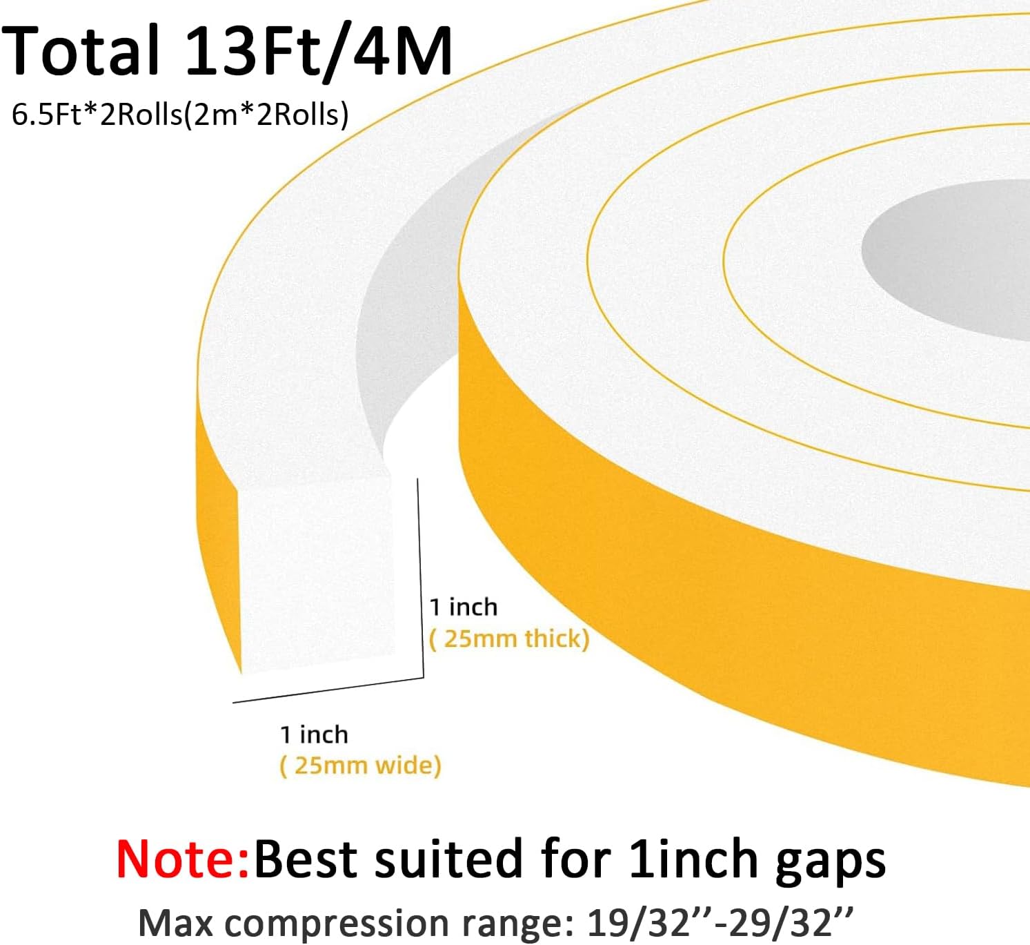 - 🟠SAVE ON ENERGY BILLS- Sealing gaps with this door window insulation strip helps to reduce energy consumption by keeping your room cool in summer and warm in winter, thus reducing electricity bills. You get two rolls of air conditioner insulation foam seal strip with 13 ft in total in each package, providing enough material for multiple seals. And it's easy to install and apply without extra tools, just simply peel and stick it on for a tight seal. It's a hassle-free and money-saving solution!