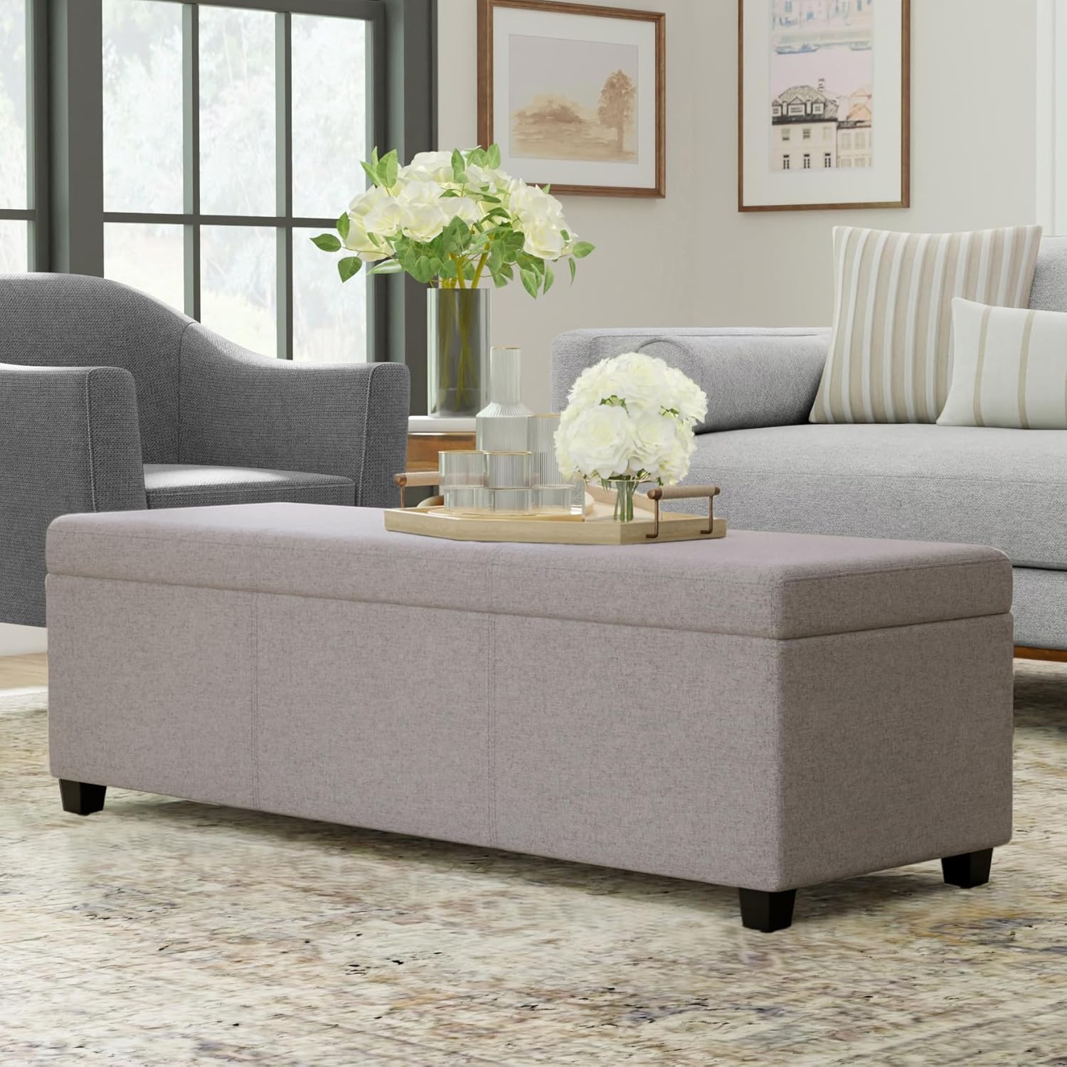 SIMPLIHOME Avalon 54 inch Wide Contemporary Rectangle Extra Large Storage Ottoman Bench in Cloud Grey Polyester Linen Fabric, Assembled, for The Living Room, Entryway and Family Room