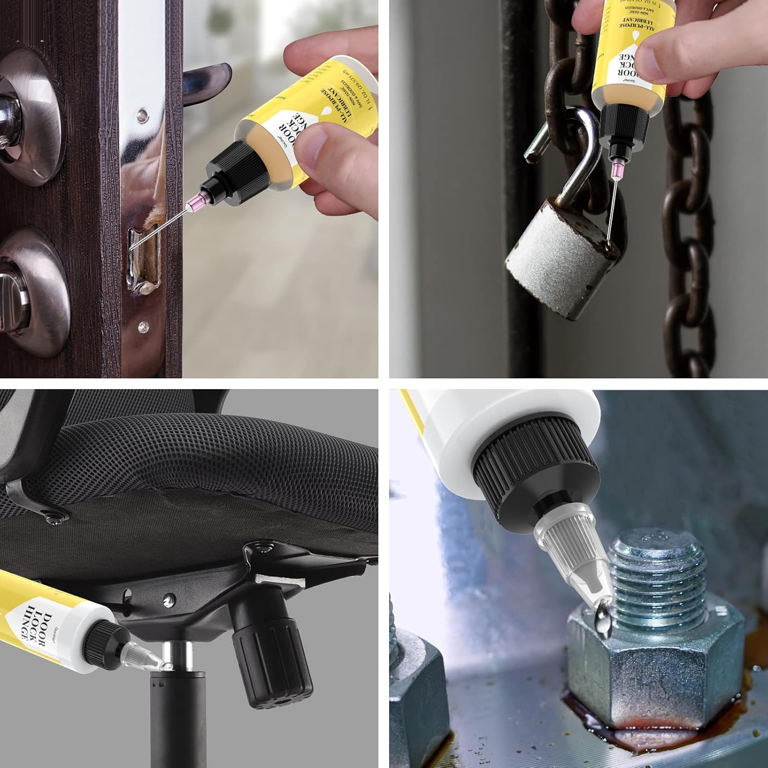 - EASY TO USE; 4oz twist spout + 1oz needle combo allows you to easily squeeze out door hinge lubricant, and makes it easy to lubricate hard-to-reach areas, get the right amount in the right spot, no worry about small gaps.