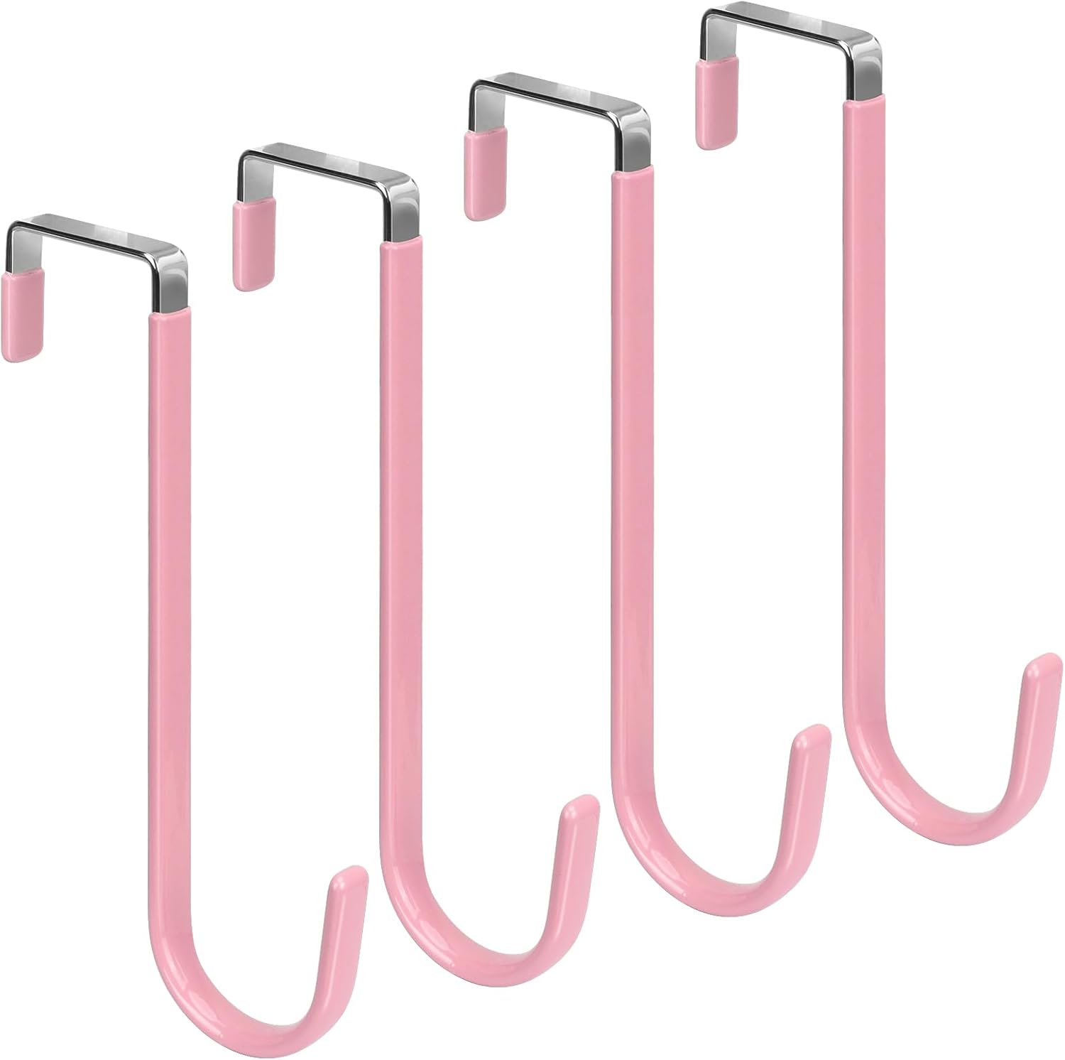 FYY Over The Door Hooks, 4 Pack Upgraded Long Door Hangers Hooks with Rubber Prevent Scratches Heavy Duty Organizer Hooks for Hanging Clothes, Towels, Hats, Coats, Bags Pink
