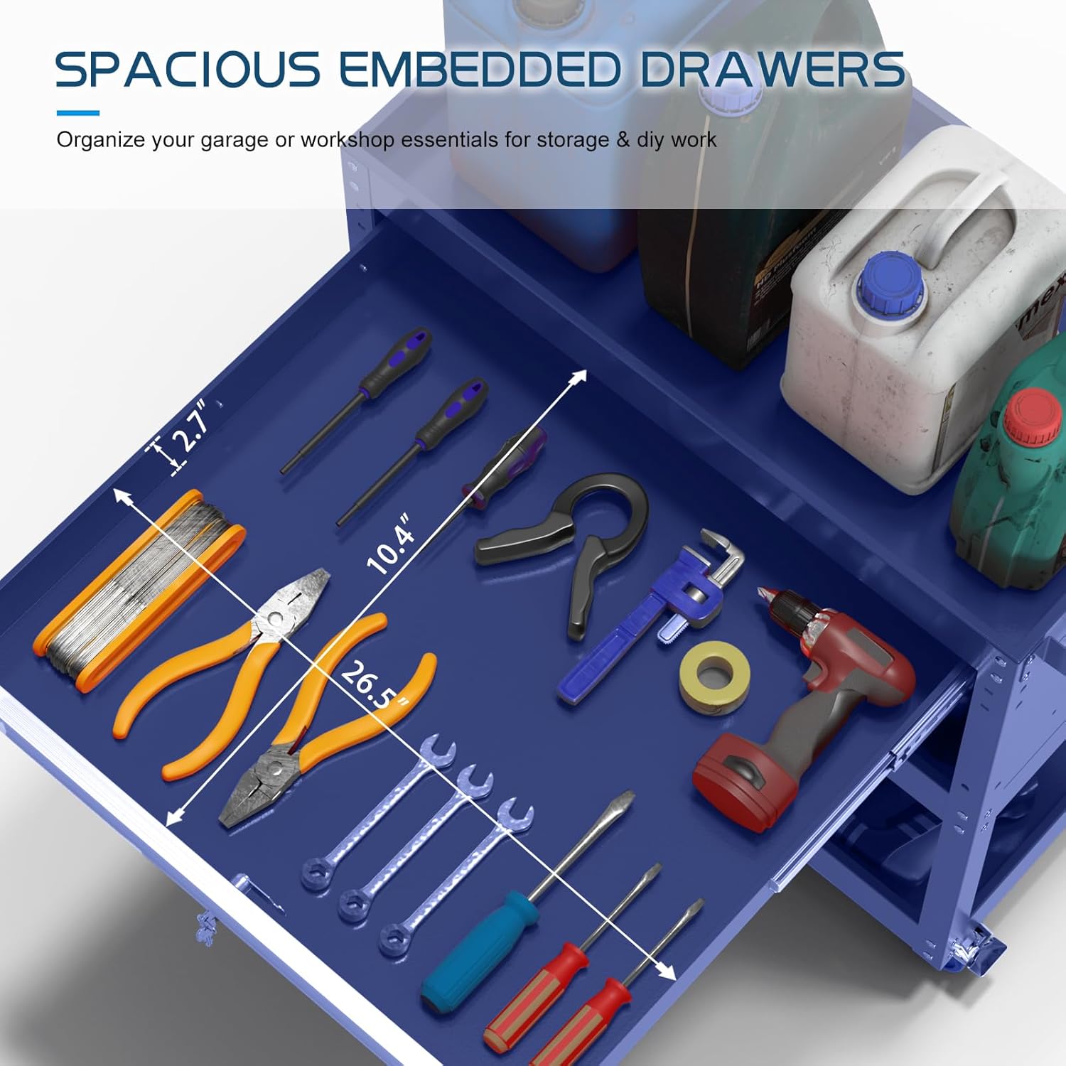 - Secure Storage Drawers: Equipped with a lockable drawer for organizing smaller tools and accessories, Maemttes cart keeps your essentials secure and easily accessible. Smooth sliding rails make drawer operation effortless, while the lock ensures added safety.