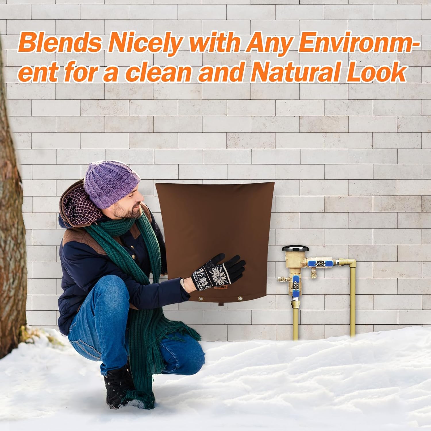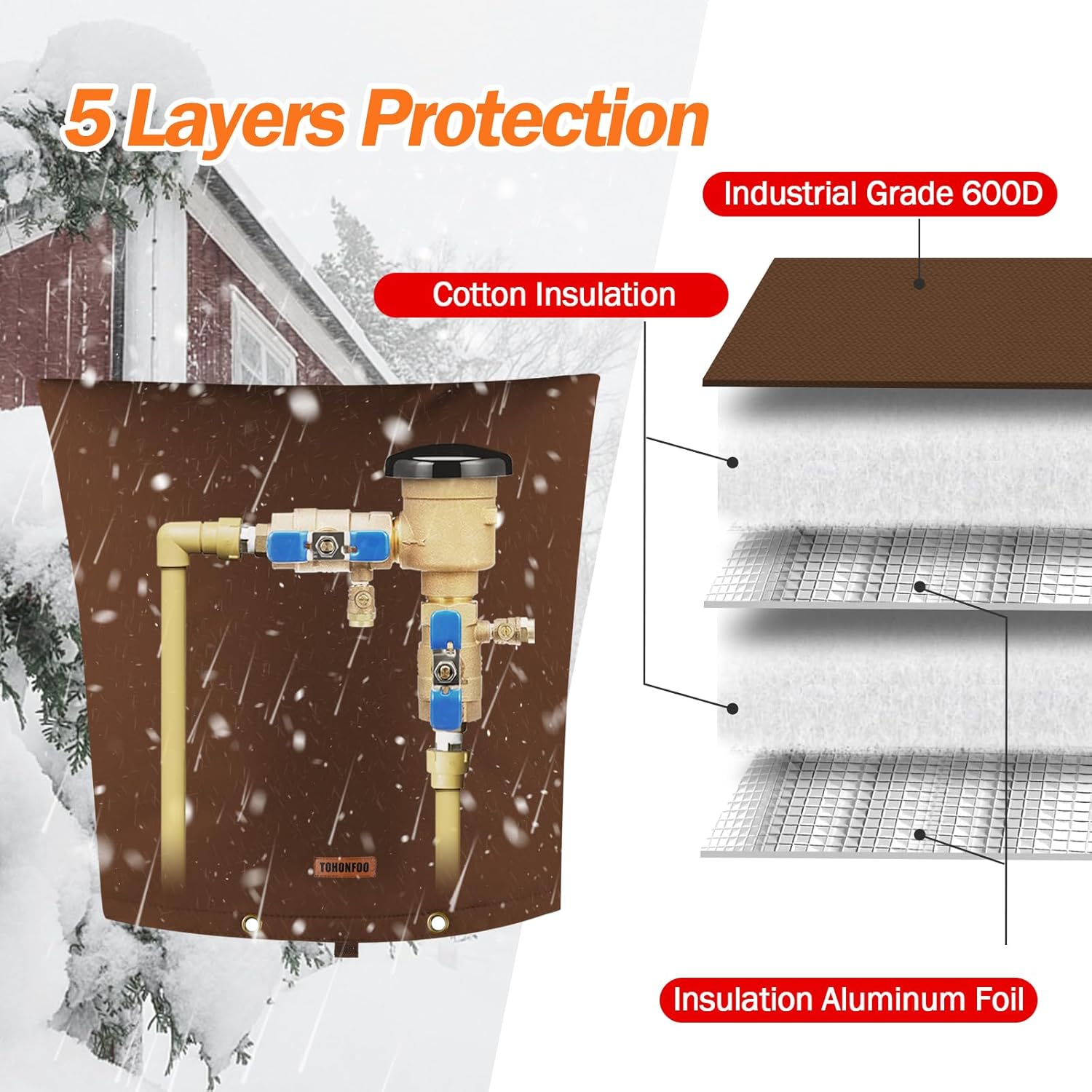 TOHONFOO Backflow Preventer Pipe Insulation Cover (5°F) - Irrigation Sprinkler Valve Insulated Pouch - Water Well Pump Cover - Sturdy 5 Layers for Winter Freeze Protection, 24" W x 26" H, Brown