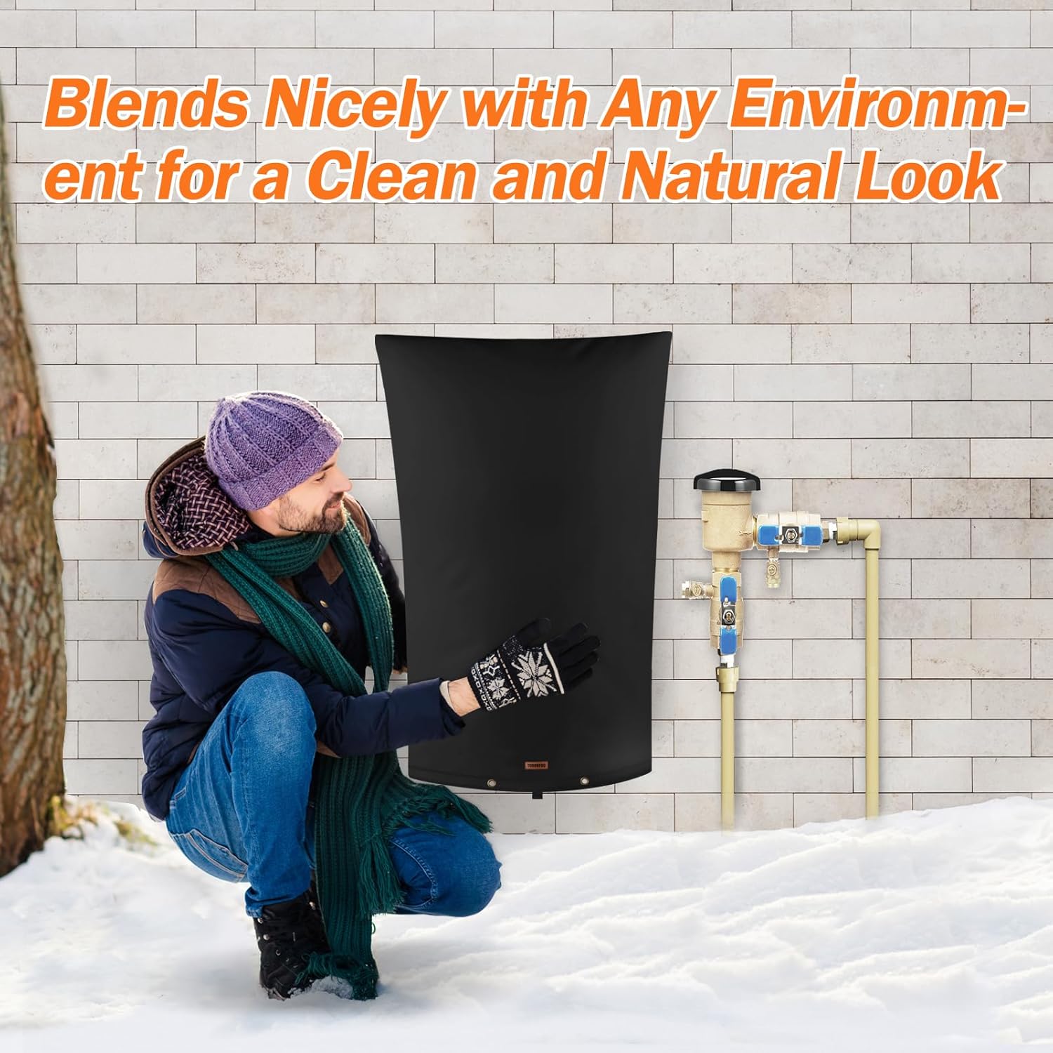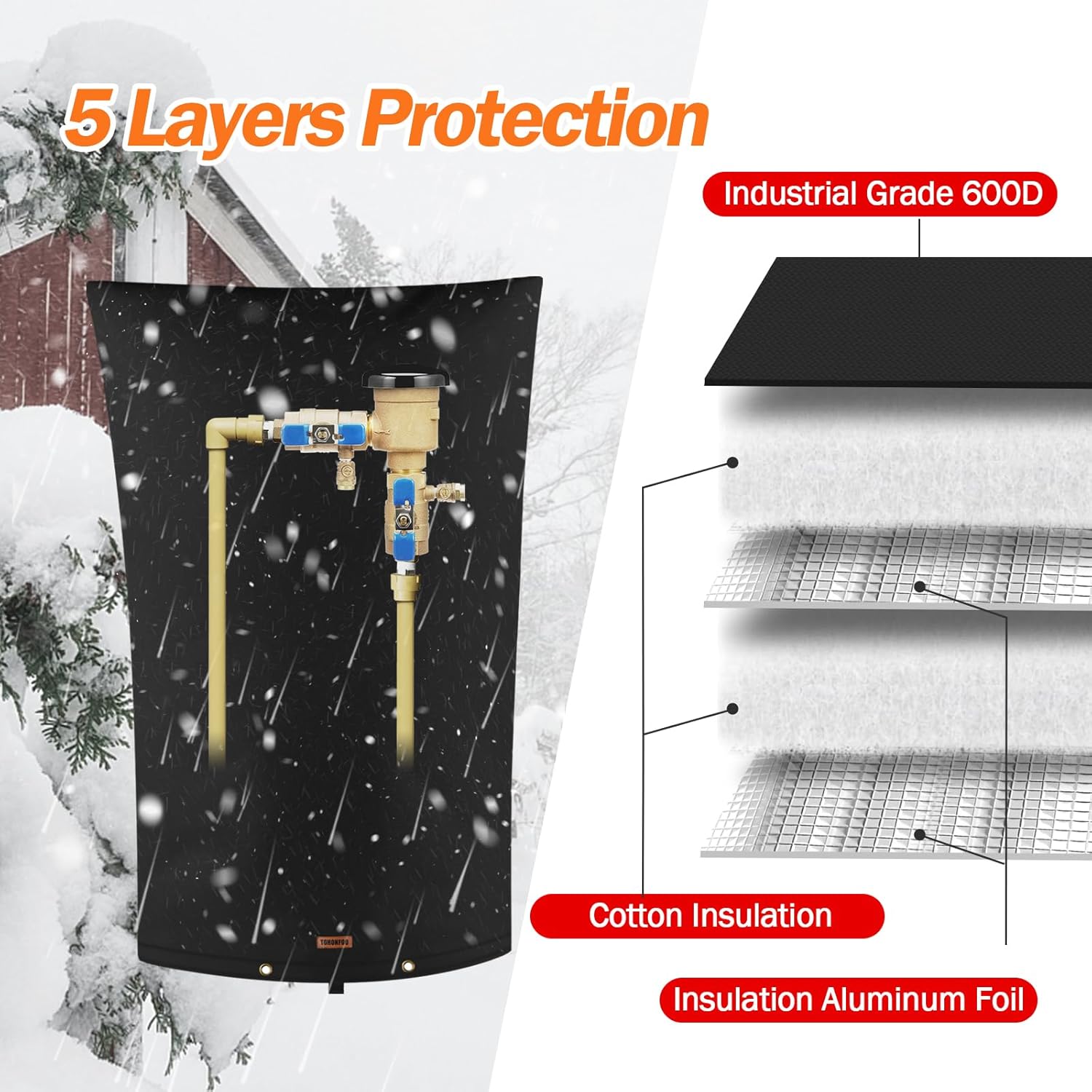 TOHONFOO Backflow Preventer Pipe Insulation Cover (5°F) - Irrigation Sprinkler Valve Insulated Pouch - Water Well Pump Cover - Sturdy 5 Layers for Winter Freeze Protection, 22" W x 34" H, Black