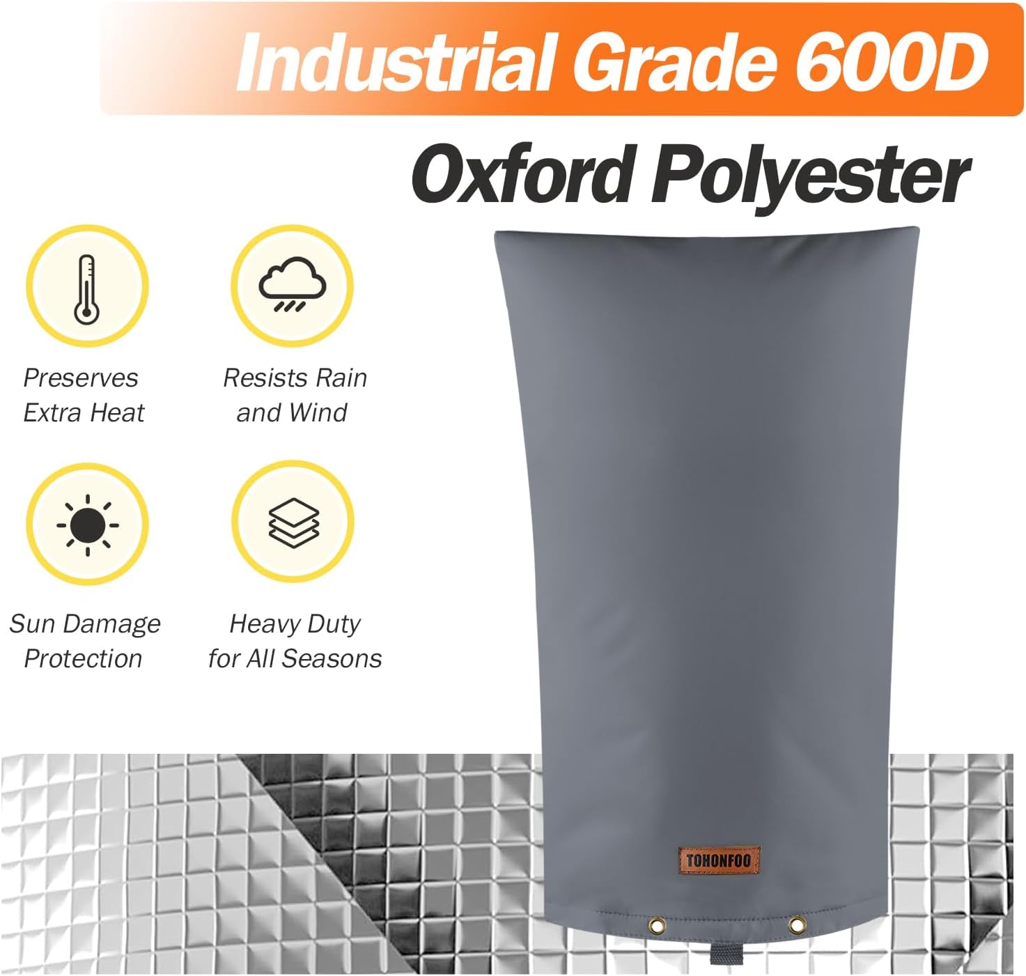 - 【5 Layers Design Insulation & Waterproof】Made of 1 Layer of Waterproof Heavy Duty 600D Oxford Fabric, 2 Layers of Cotton Insulation, and 2 Layers PE Sliver Coated Cloth that make it guard against severe weather. Our sprinkler cover for outside is engineered to endure freezing temperatures as low as 5 degrees. We recommend draining the system to winterize or prevent unknown cold weather.