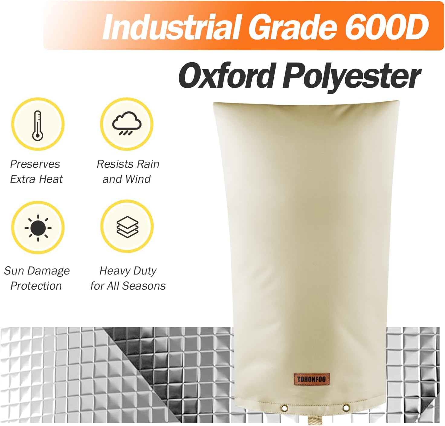 - 【5 Layers Design Insulation & Waterproof】Made of 1 Layer of Waterproof Heavy Duty 600D Oxford Fabric, 2 Layers of Cotton Insulation, and 2 Layers PE Sliver Coated Cloth that make it guard against severe weather. Our sprinkler cover for outside is engineered to endure freezing temperatures as low as 5 degrees. We recommend draining the system to winterize or prevent unknown cold weather.