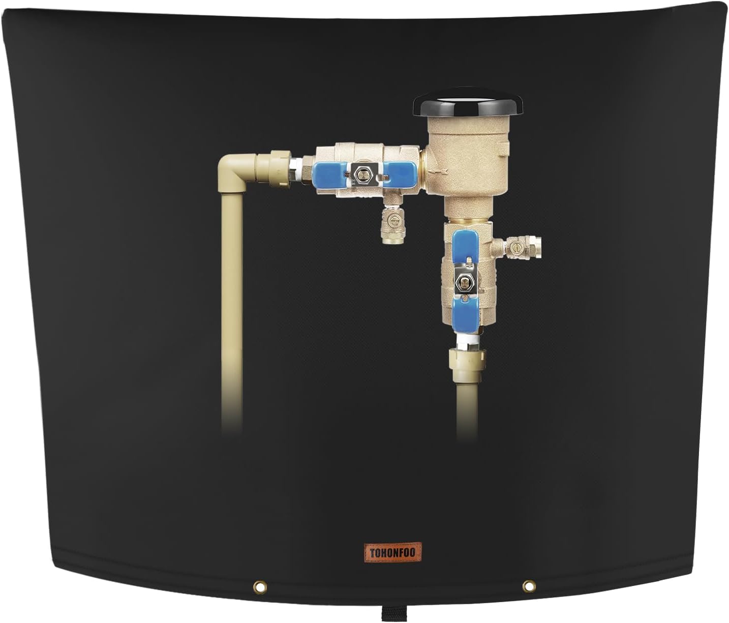 TOHONFOO Backflow Preventer Pipe Insulation Cover (5°F) - Irrigation Sprinkler Valve Insulated Pouch - Water Well Pump Cover - Sturdy 5 Layers for Winter Freeze Protection, 34" W x 24" H, Black