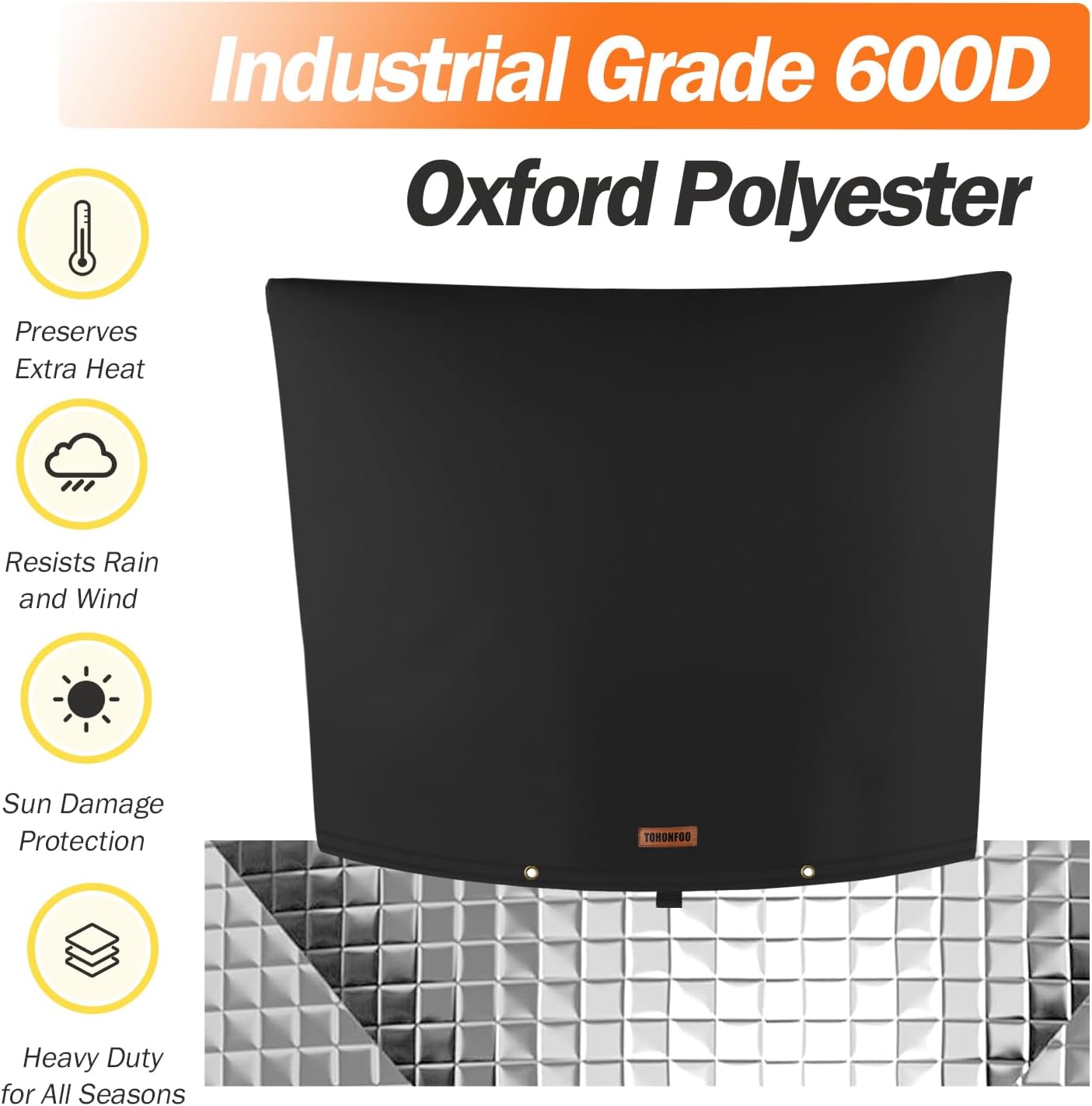 - 【5 Layers Design Insulation & Waterproof】Made of 1 Layer of Waterproof Heavy Duty 600D Oxford Fabric, 2 Layers of Cotton Insulation, and 2 Layers PE Sliver Coated Cloth that make it guard against severe weather. Our sprinkler cover for outside is engineered to endure freezing temperatures as low as 5 degrees. We recommend draining the system to winterize or prevent unknown cold weather.