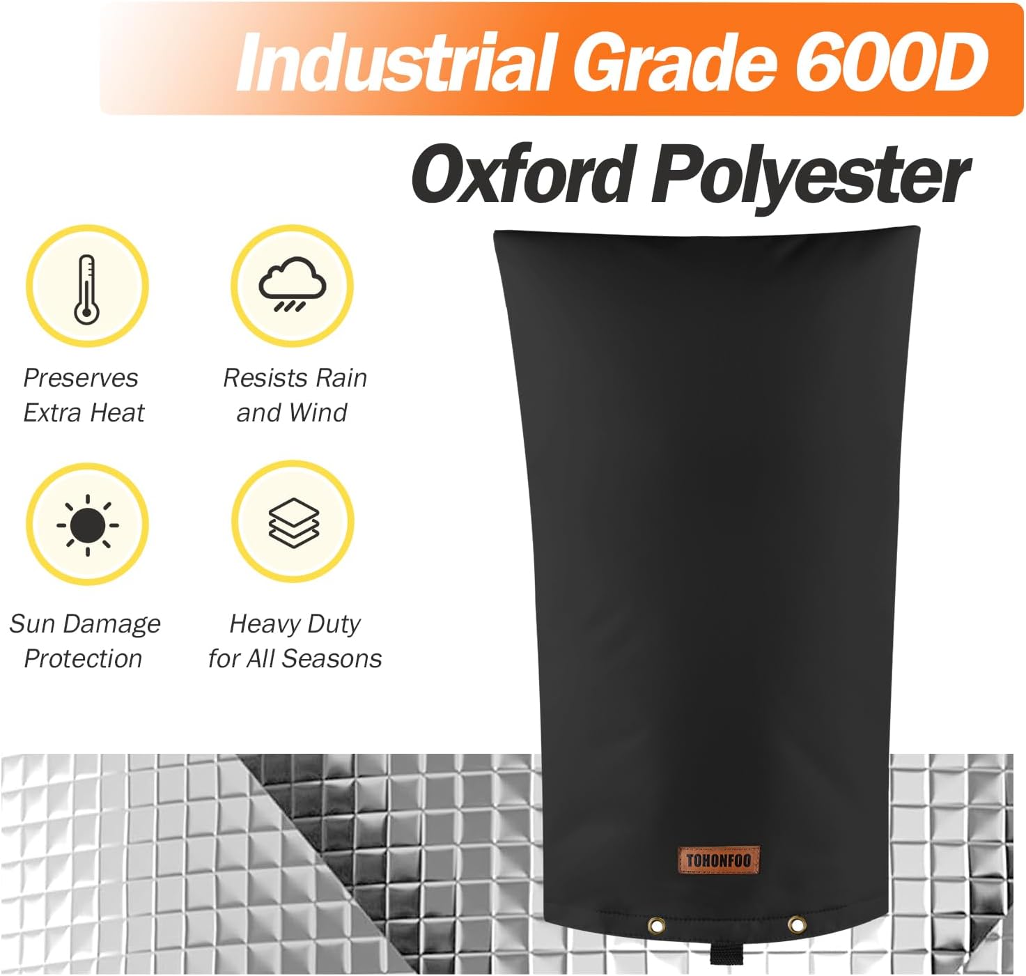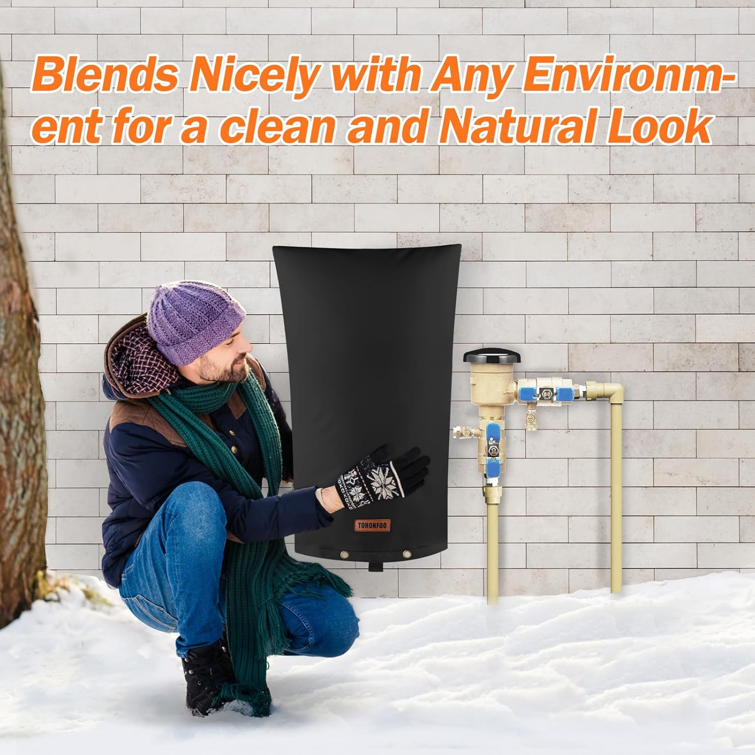 TOHONFOO Backflow Preventer Pipe Insulation Cover (5°F) - Irrigation Sprinkler Valve Insulated Pouch - Water Well Pump Cover - Sturdy 5 Layers for Winter Freeze Protection, 14" W x 26" H, Black