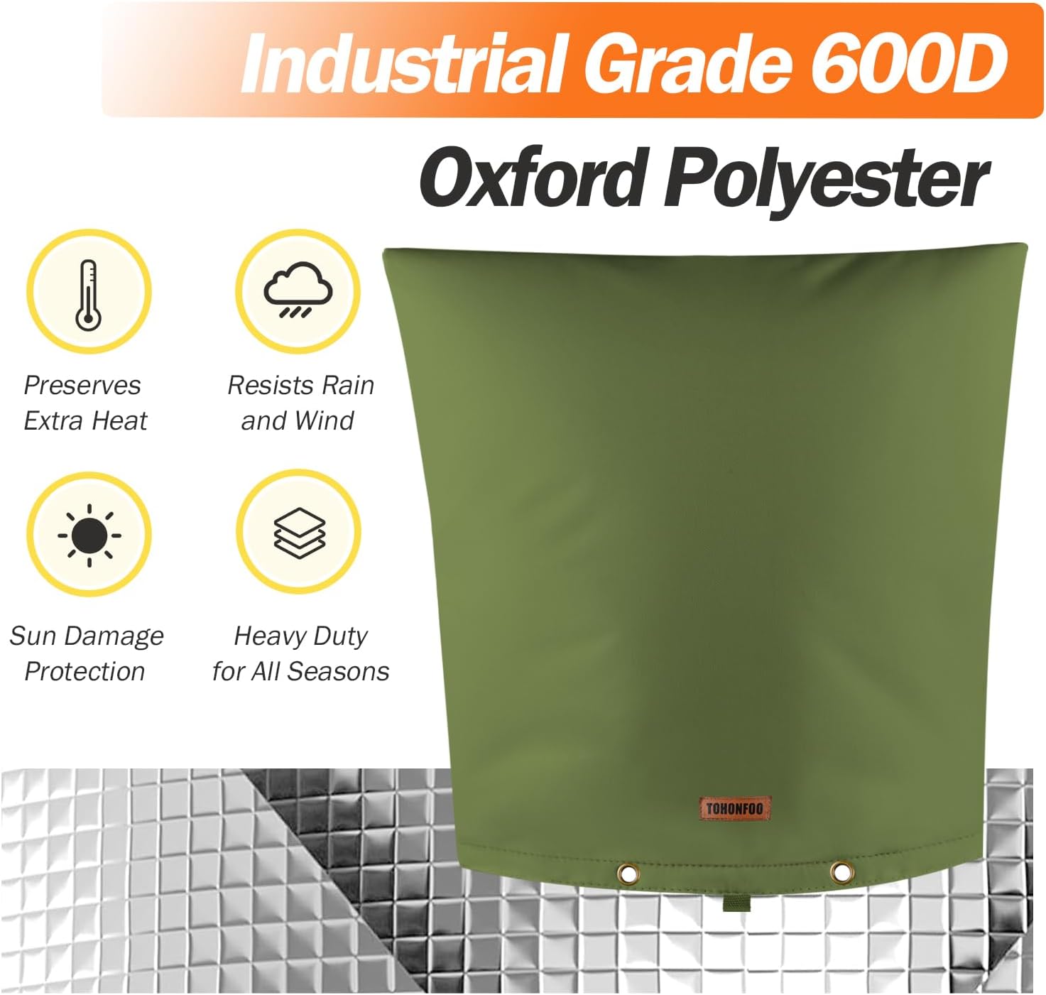 - 【5 Layers Design Insulation & Waterproof】Made of 1 Layer of Waterproof Heavy Duty 600D Oxford Fabric, 2 Layers of Cotton Insulation, and 2 Layers PE Sliver Coated Cloth that make it guard against severe weather. Our sprinkler cover for outside is engineered to endure freezing temperatures as low as 5 degrees. We recommend draining the system to winterize or prevent unknown cold weather.