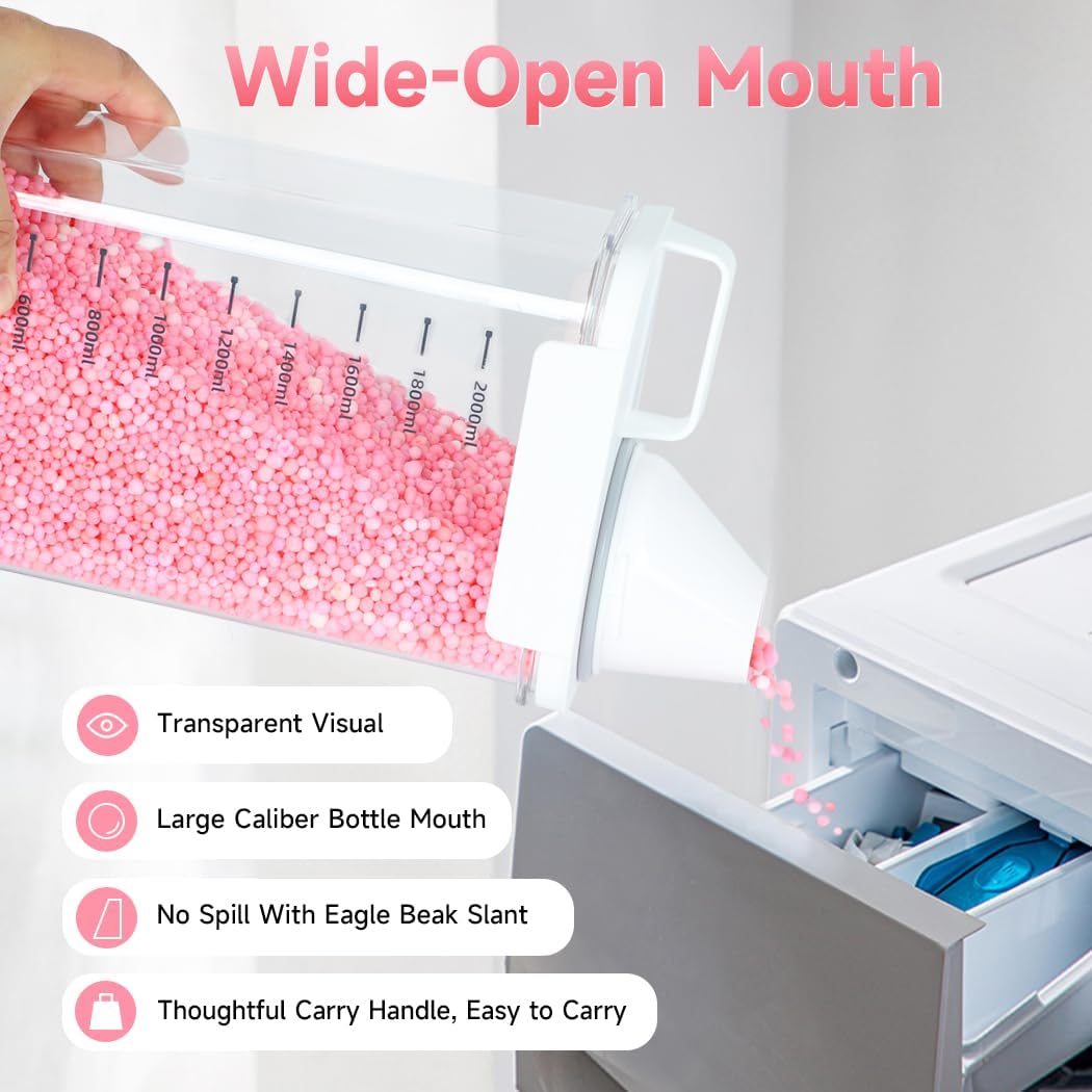 - Wide-open mouth: This laundry detergent dispenser has a hawkbill slanted spout is easy to pour and not easy to spill, and the thoughtful carrying handle is easy to hold