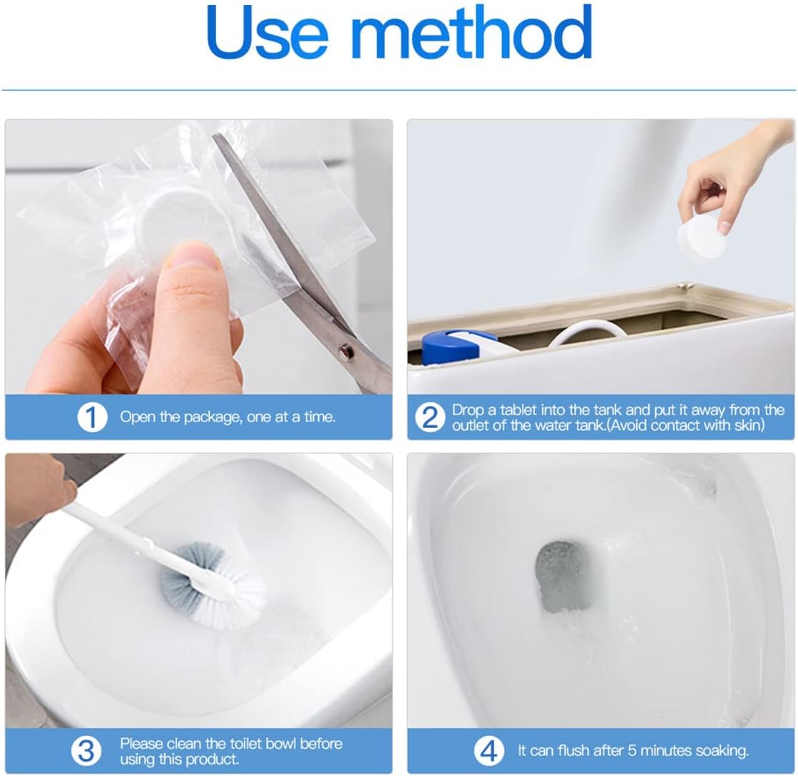 - Easy to Use, No Scrubbing Required! Simply unpack, place the toilet tank cleaner tablets in the tank, let it dissolve for 30 minutes and then flush. The simple operation saves you a lot of time and effort