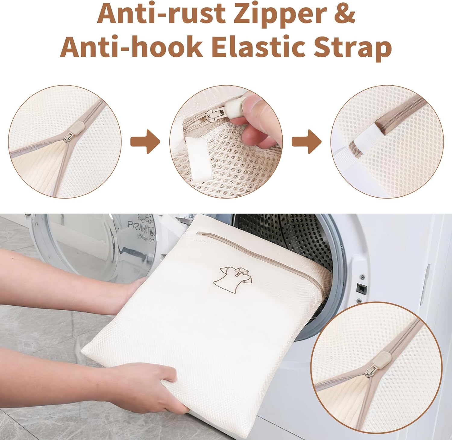 - 🧦【Warm tips】 About 70% of the delicates laundry bag should be filled with clothes. Do not load the washing machine too full, it has a better decontamination ability when it is filled with 70% clothes. Please do not pull the zipper on the mesh laundry bags to the end to prevent the zipper from falling off.