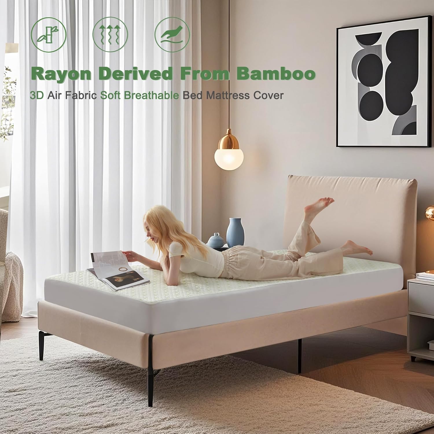 - 3D Air Fabric and Noiseless: Crafted from polyester with a unique channel weave structure, our twin xl mattress protector waterproof promotes airflow and coolness. The waterproof mattress protector twin xl is constructed with soft, comfort materials that can enhance your overall sleep experience and help you relax and unwind after a long day