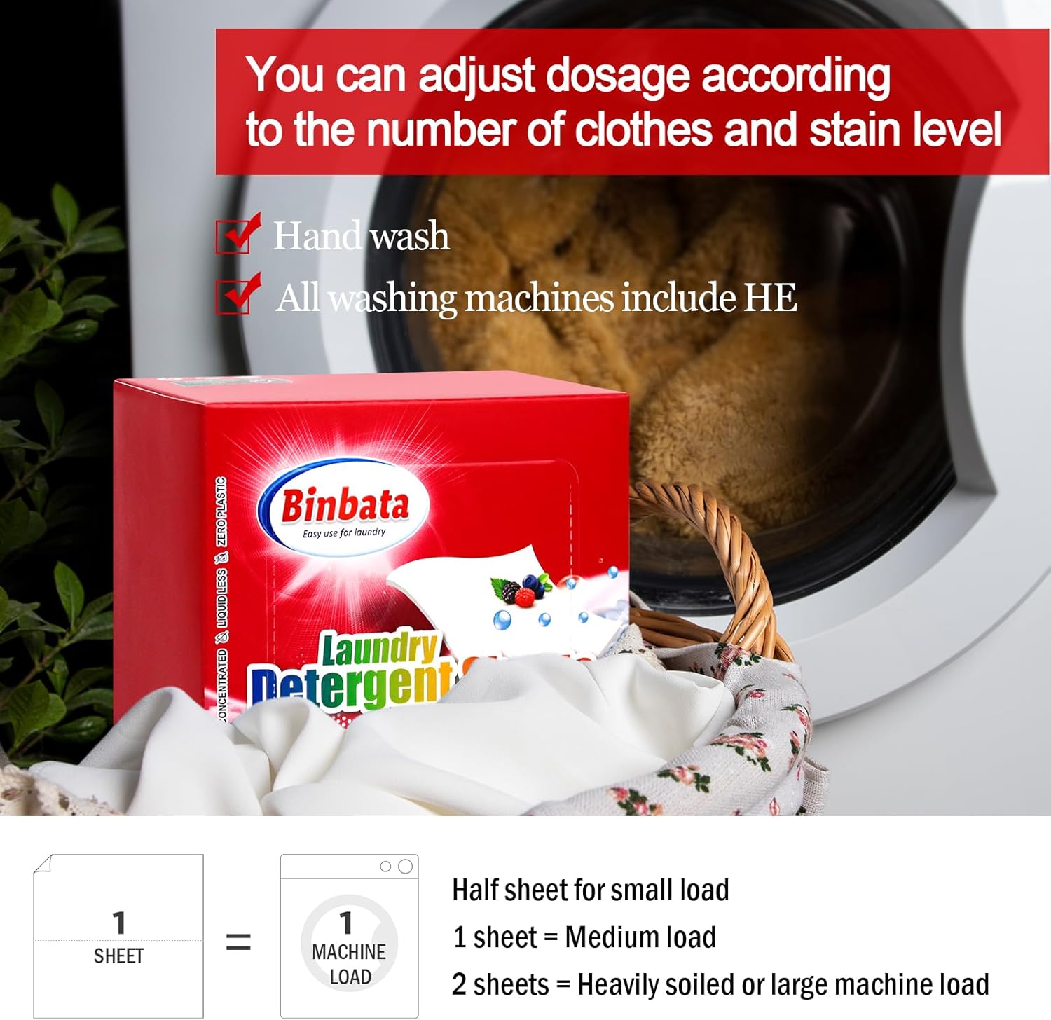 - ๐๐ ๐๐๐๐ฉ ๐๐ฅ๐๐๐ง๐ฌ๐ข๐ง๐ ๐๐จ๐ฐ๐๐ซ: Binbata laundry detergent strips adopt polymer concentration technology, small size but thick enough with super cleaning power, highly concentrated detergent, perfectly deal with laundry difficulties such as sweat stains, beverage stains, fruit stains, tea stains, coffee stainsโฆ All ingredients are NO HARSH CHEMICALS