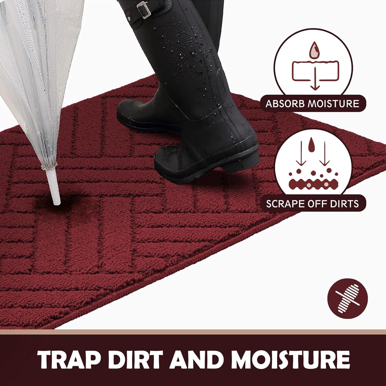 - KEEP YOUR FLOORS CLEANE AND DRY: Our Indoor Doormat was designed with double layer technology and irregularity carpet surface design. It is more efficient to absorb water and catch mud and moisture from muddy boots or pet’s paws. No pressure, keep your home cleaner and more beautiful