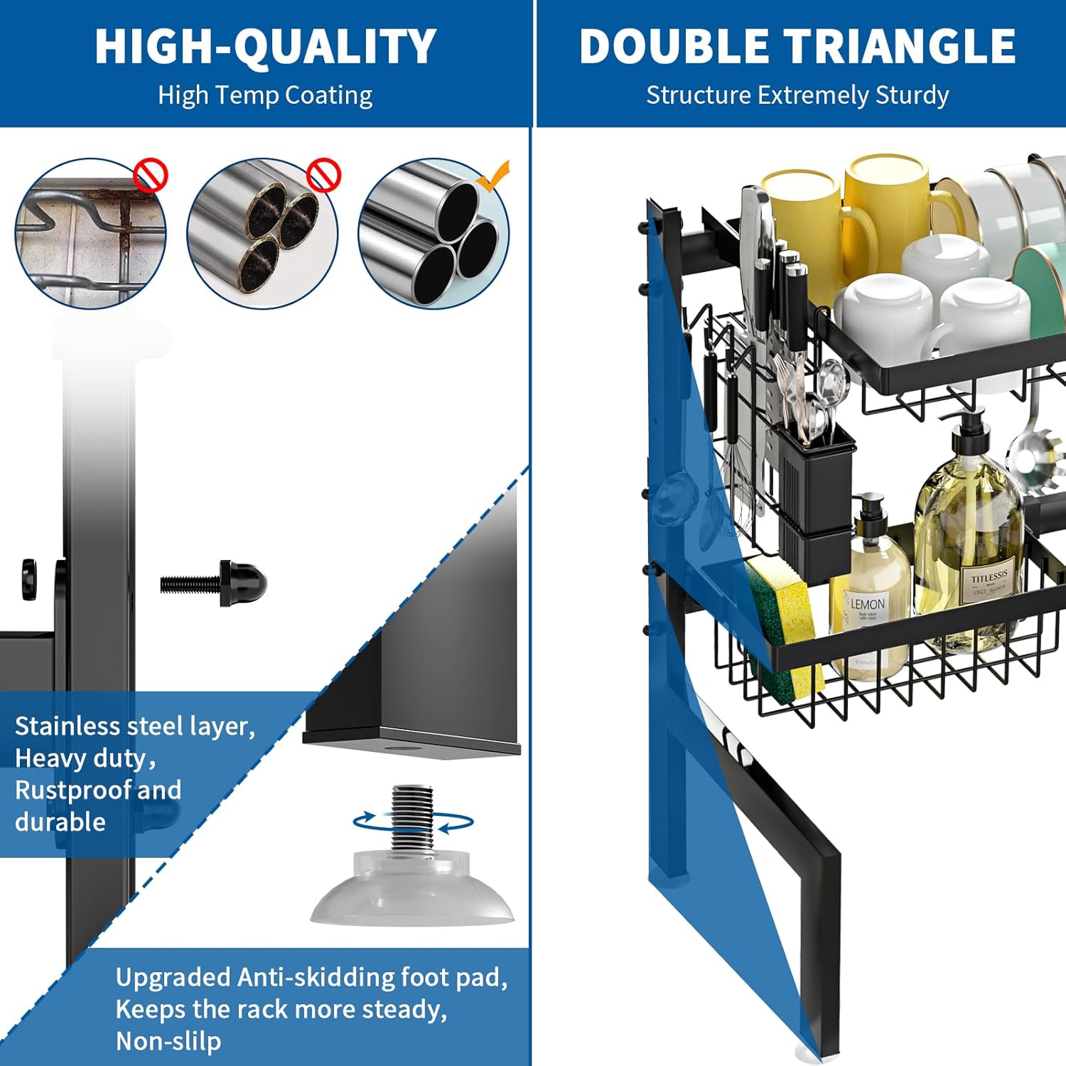 Over The Sink Dish Drying Rack,Expandable 2-Tier Stainless Steel Over The Sink Dish Rack with Utensil Holder Dish Drainers for Kitchen Counter
