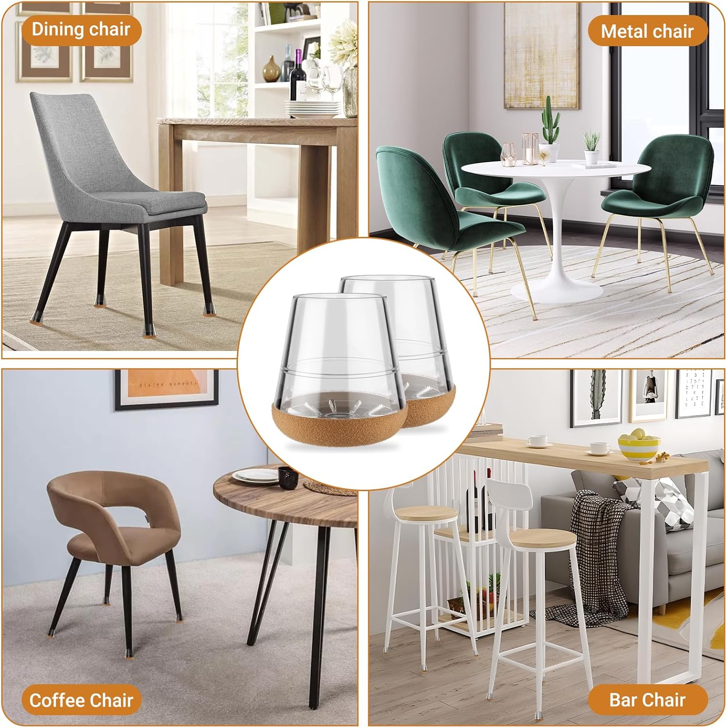 - Wide Range of Use: Meldel chair leg protectors are good for hardwood floors, tile, vinyl, marble, carpet, and other surfaces. It will protect your floors from scratches and scuffs by chair legs. These extra small chair leg floor protectors are for kitchen chairs, dining chair legs, coffee chair legs, bar stools, and metal chair legs.