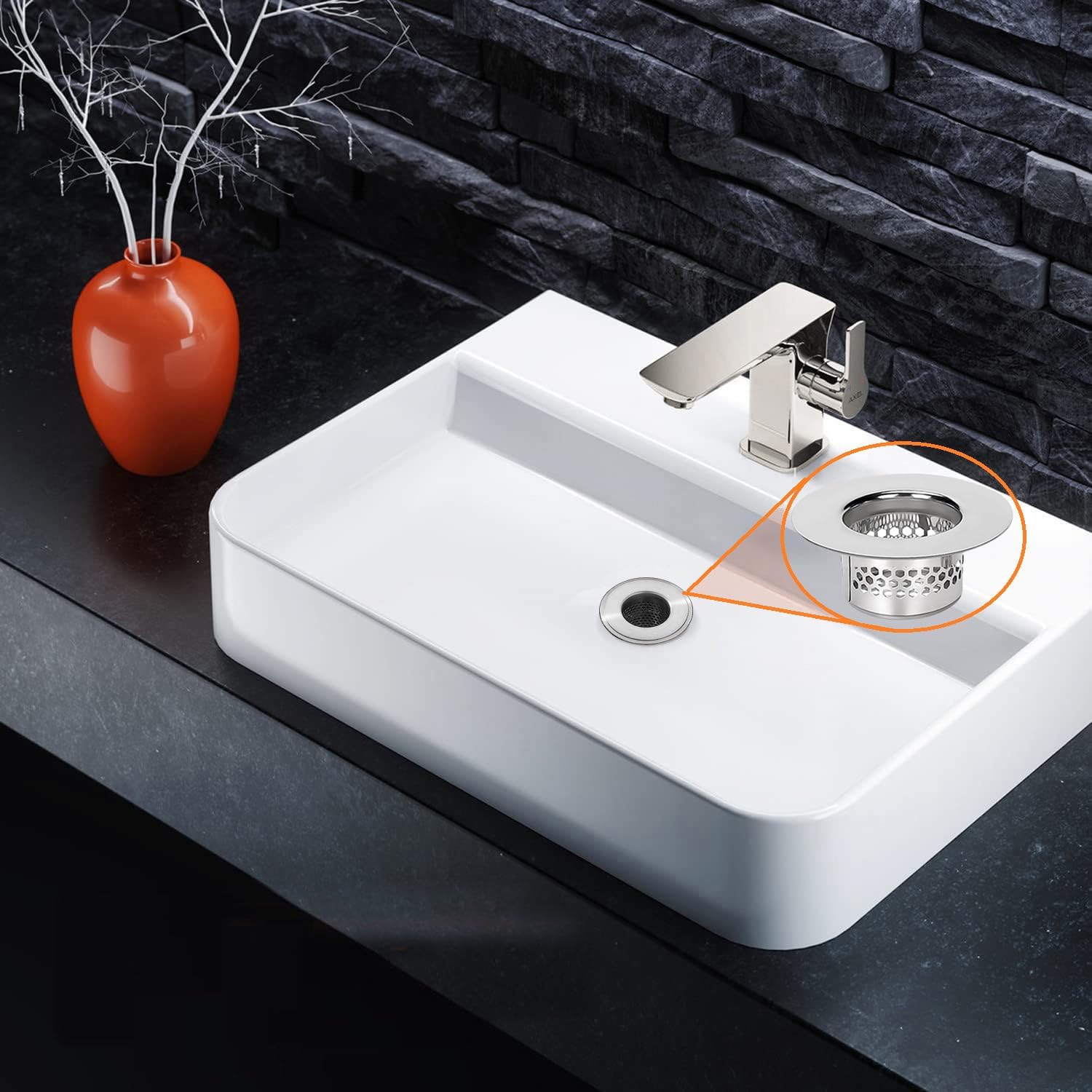 - 【MEASURE the DRAIN HOLE SIZE before PURCHASING】- The bathroom sink drain strainer fits hole drain with diameter 1.25-1.3inch and depth than 0.67inch.