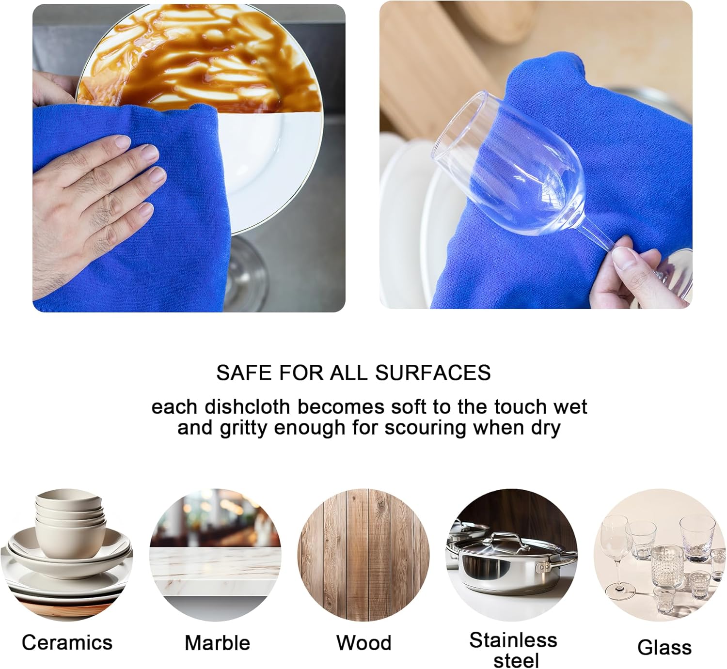 - HIGH QUALITY MATERIAL - Our dish rags are made of high quality non-abrasive and extra soft coral velvet thickening material, which is not easy to lint and fade, soft and not hurting hands, natural and without any chemicals. These dish cloths are not only suitable for kitchen cleaning, but also suitable for cleaning home furniture, car, window, electric appliance etc. Itβs so easy to remove dust, dirt, stain, grease, fingerprints.