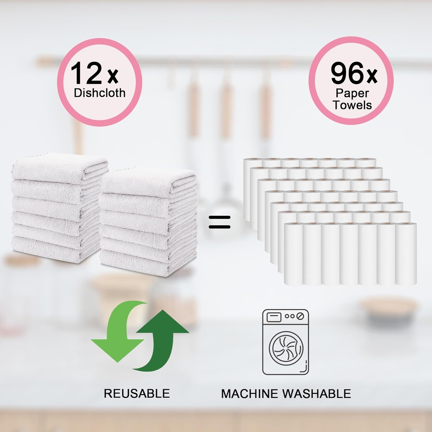 kimteny Kitchen Cloth Dish Towels, 13x28 Inches Premium Dishcloths, Super Absorbent Coral Velvet Microfiber Cleaning Cloths, Fast Drying Rags for Washing Dishes (13x28-12 Pack, White)