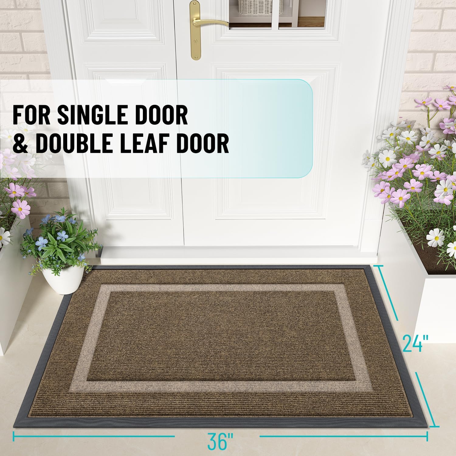 OLANLY Front Door Mat Indoor Outdoor Entrance, Waterproof All-Season, All-Weather Doormat, Sturdy Natural Rubber, Fade Resistant, Low Profile, Easy Clean Patio Porch Entryway Mat, 36x24, Brown