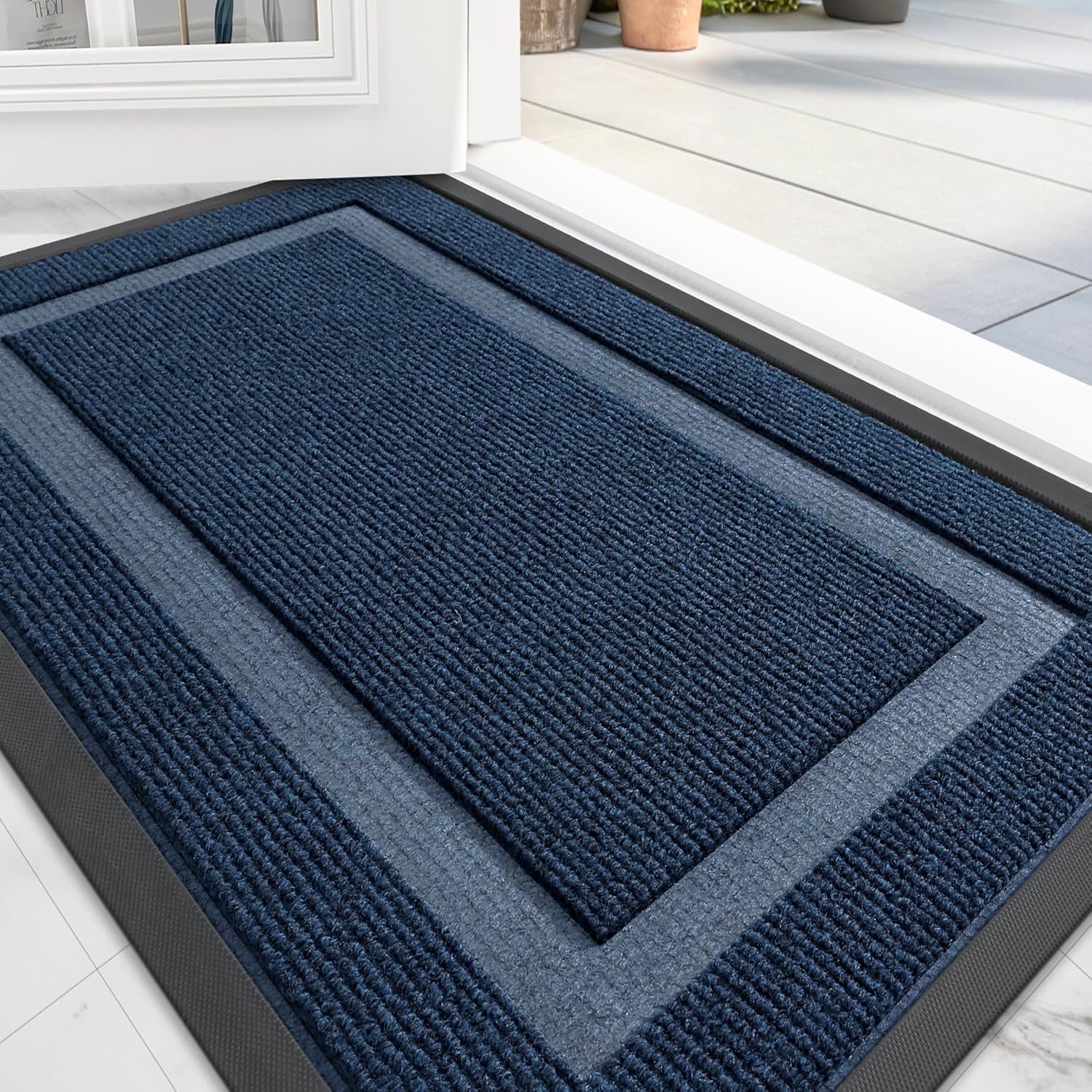 OLANLY Front Door Mat Indoor Outdoor Entrance, Waterproof All-Season, All-Weather Doormat, Sturdy Natural Rubber, Fade Resistant, Low Profile, Easy Clean Patio Porch Entryway Mat, 29.5x17, Blue