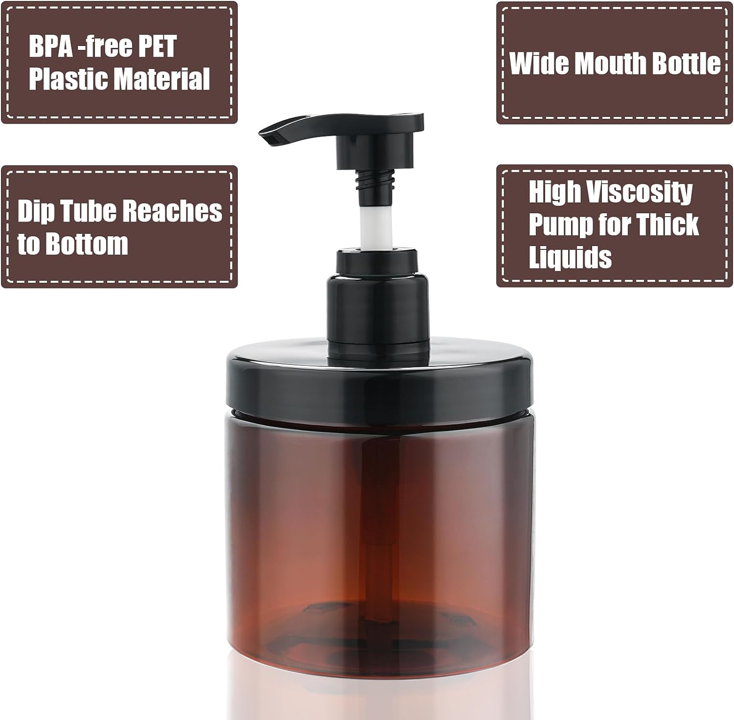 - 【Premium Material】Pump bottle dispenser made of PET plastic, Lightweight and sturdy material reduces your travel burden. Size:3.54*3.35inch, 500ml/16.9oz. Please kindly note that this product doesn’t work for thick liquid such as thick cream, thick lotion, etc. Please also note that the straw in the bottle needs to be cut according to your own needs. Any problems, we will do our best to meet your satisfaction.