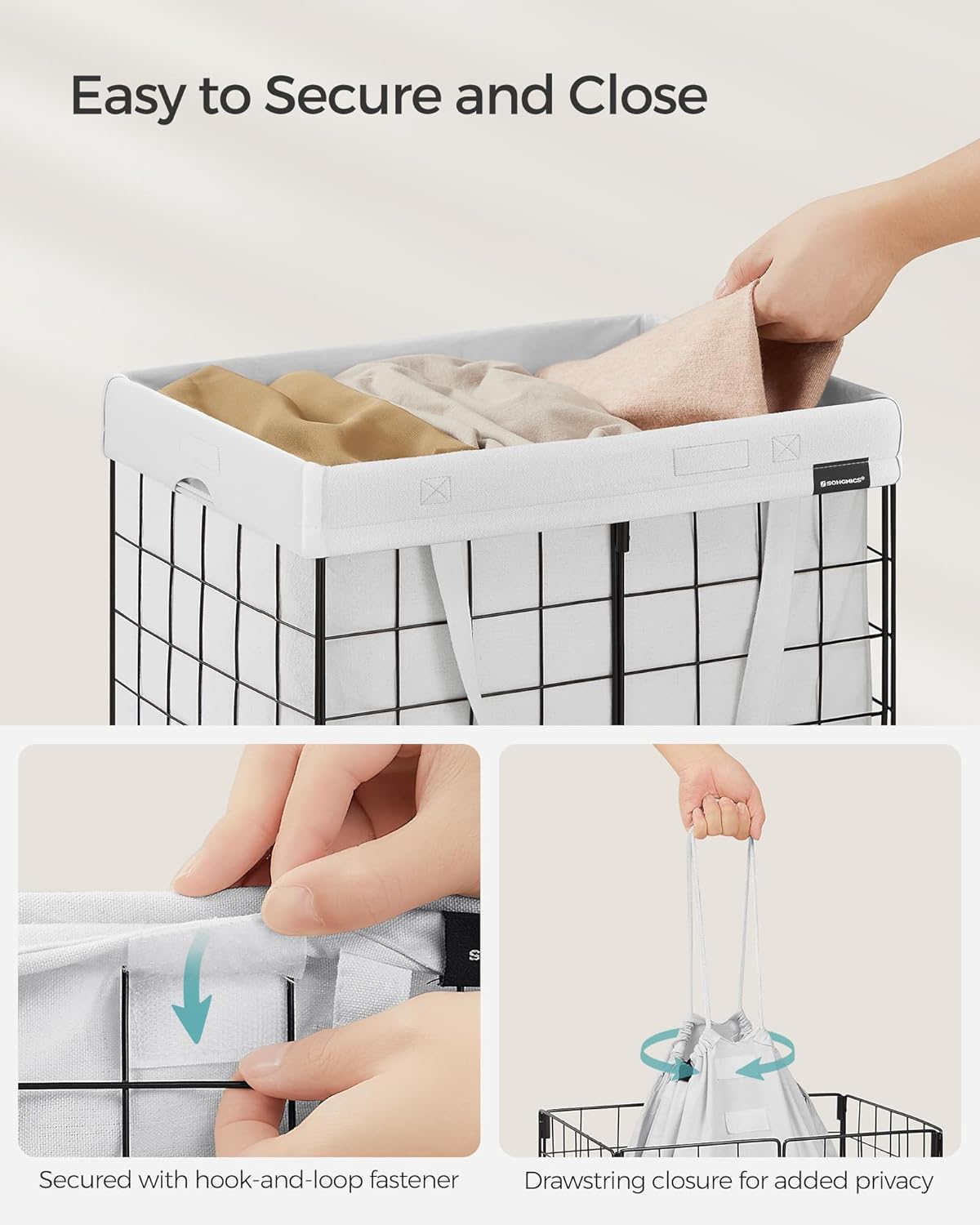 - [Easy to Remove and Move] Attached to the basket with hook-and-loop fasteners, the liner is easy to remove. The handles let you easily carry your laundry from the bedroom to the laundry room or bathroom, without having to carry the whole laundry hamper