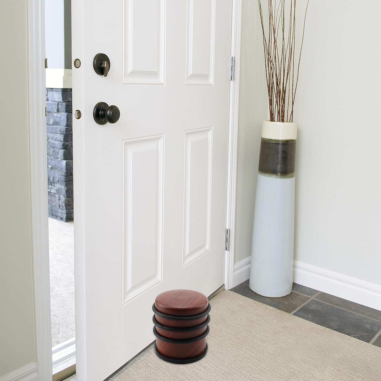 - MULTI USES - The door stop is ideal for regular indoor doors, bathrooms and bedroom, kitchen, office, residence or commercial place. Excellent to avoid door handles making marks on walls if placed behind the door or to avoid doors closing if placed in front.