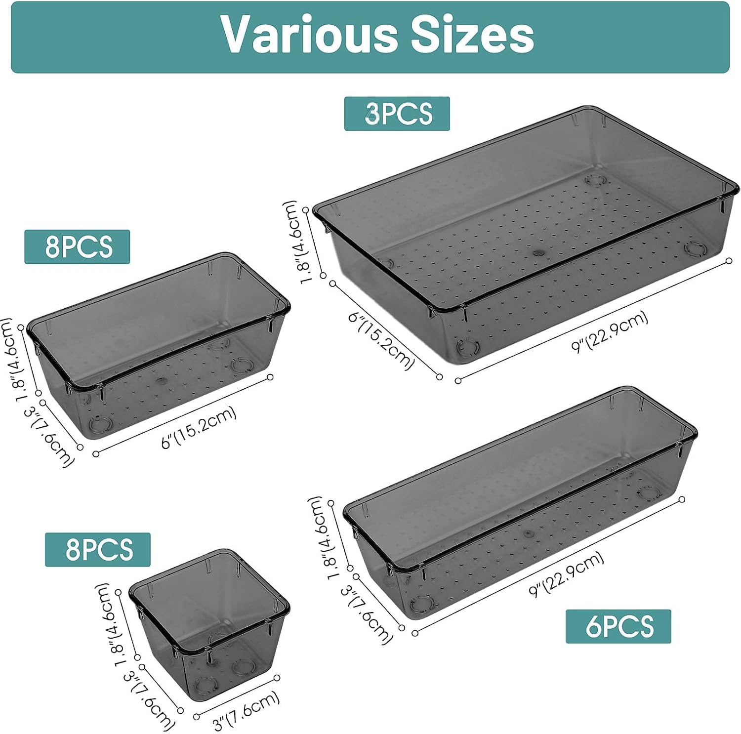 - Premium Material:The drawer organizer is made of non-toxic plastic which may be safely used. The transparent design makes it easy to find what you need quickly