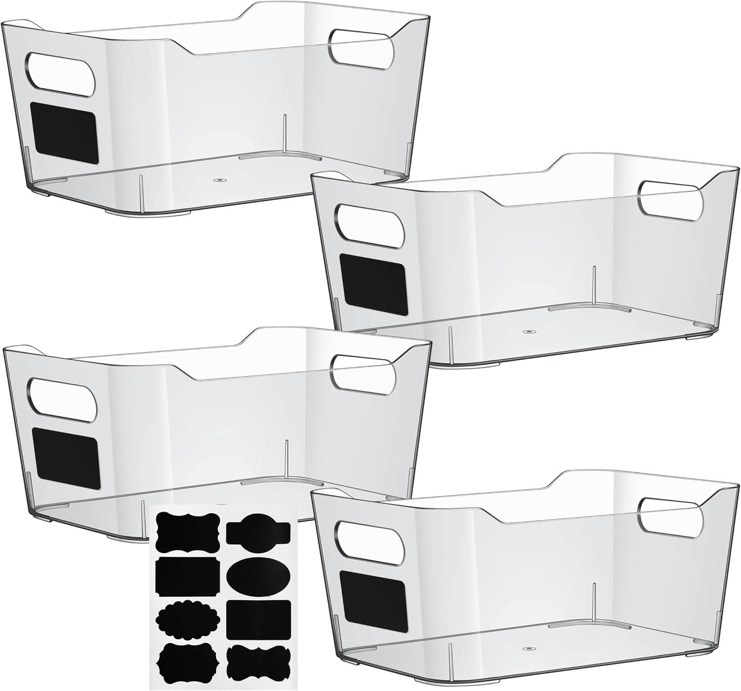 Clear Plastic Storage Bins, Perfect for Kitchen Organization or Pantry Organizers and Storage, Refrigerator Freezer Fridge Organizer Storage Containers Bin for Organizing Medicine Cabinet Organizer