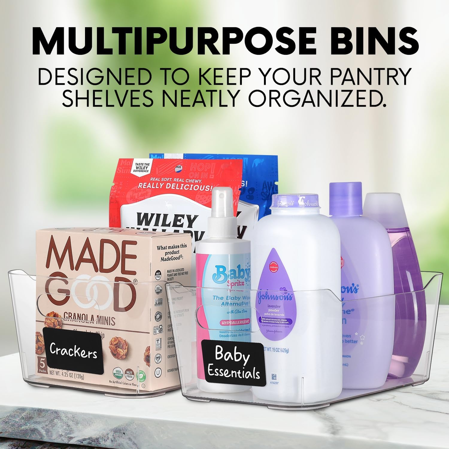 Clear Plastic Storage Bins with Labels, Pantry Organizers and Storage Containers Fridge Organizer Bins Kitchen Cabinet Organization for Organizing Medicine Cabinet Organizer Bin Bathroom Refrigerator