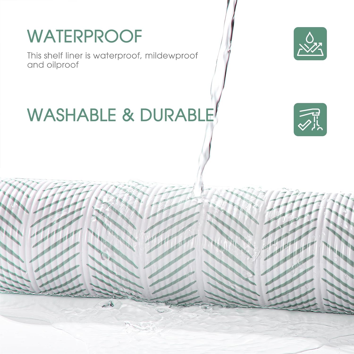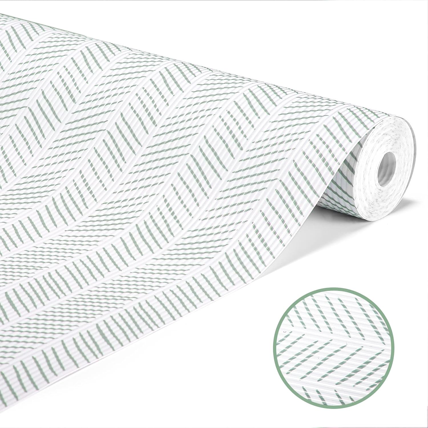 Glotoch Non Adhesive Shelf Liners for Kithchen Cabinets,Non Slip Waterproof Drawer Liners for Dresser, Liner, Fridge, Wire Shelving,Pantry,Heavy Duty, White and Green Herringbone 12X60 Inch