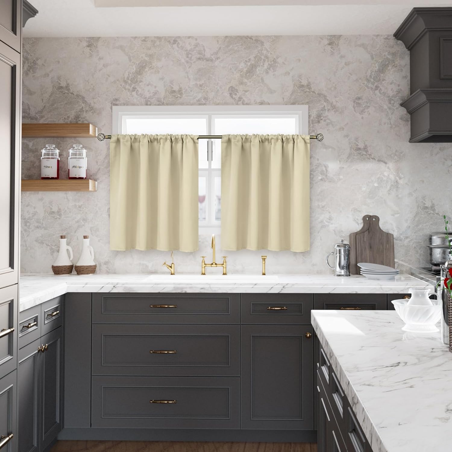 BGment Beige Blackout Curtains 40 Inches Long for Kitchen Window - Short Thermal Insulated Drapes with Rod Pocket Darkening Privacy for Basement Cafe Bedroom, 42 x 40 Inch, 2 Panels