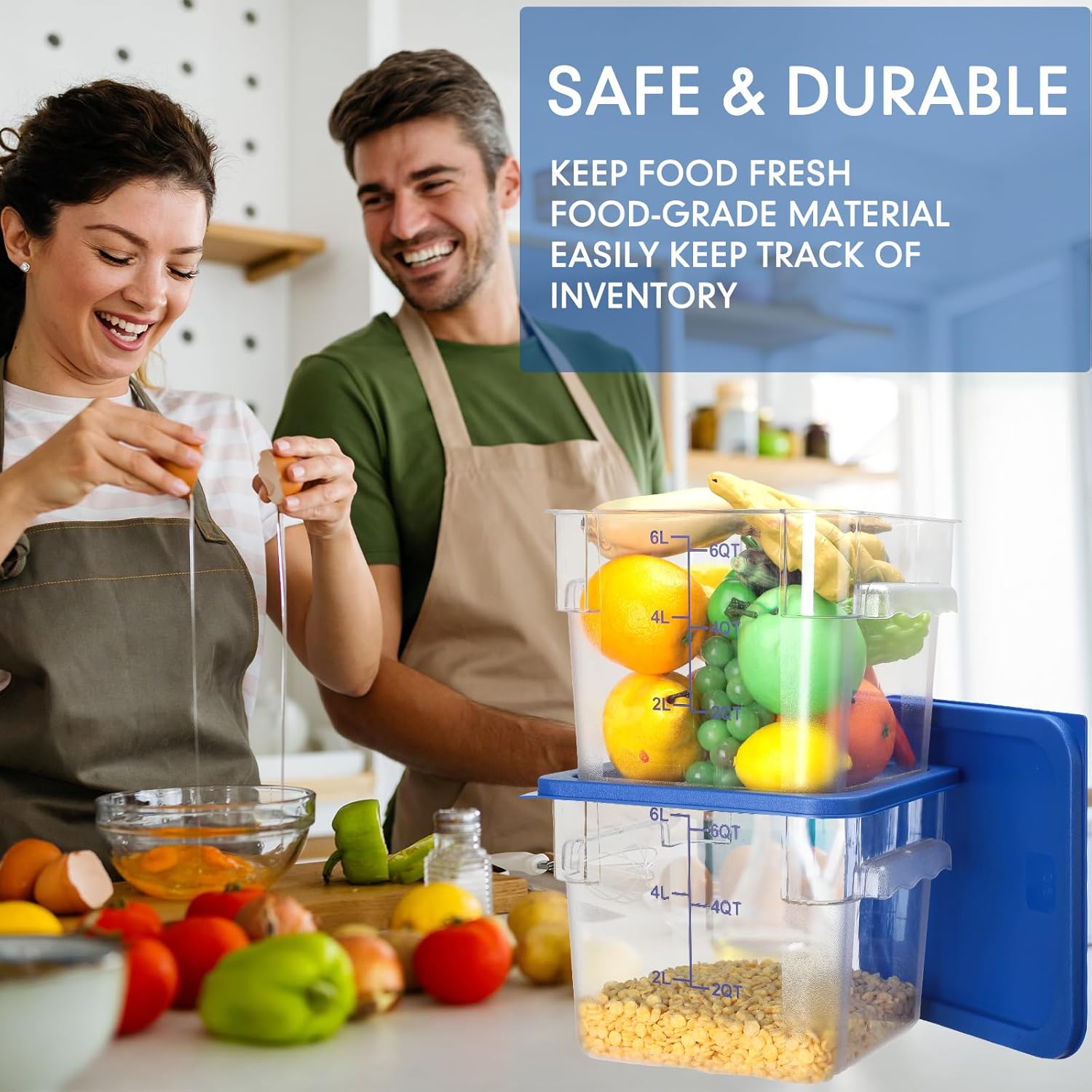 Lallisa 8 Pack 6 Qt Commercial Food Storage Containers with Lids Square Food Storage Container Clear Cereal Storage Containers for Kitchen Freezer Pantry Restaurant Flour Sugar(Blue Lids)