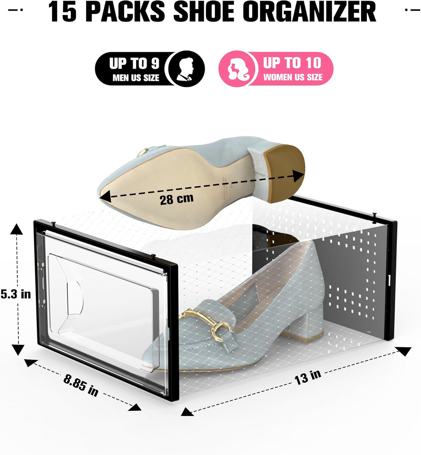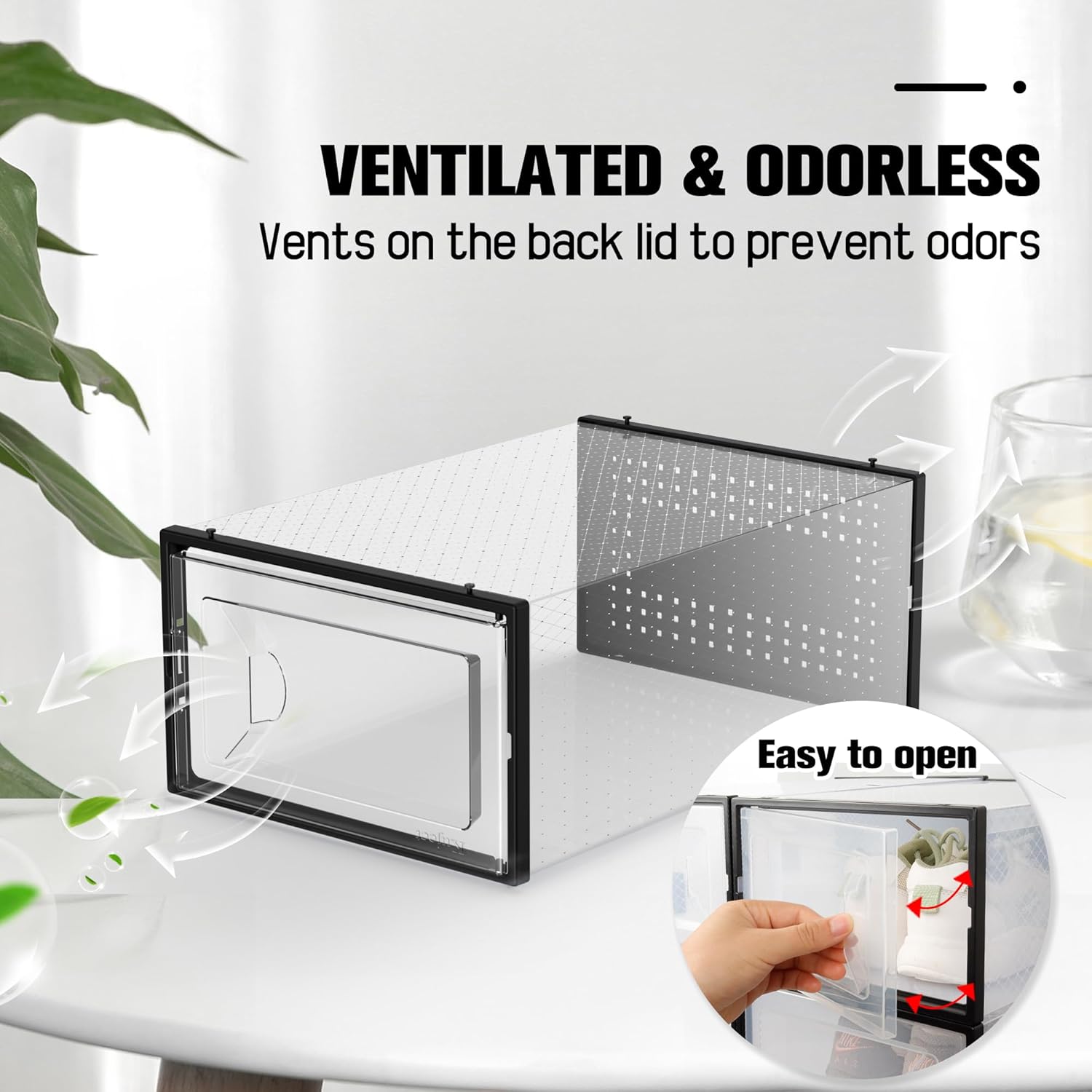 - Visibility & Ventilation Design: Transparent shoe case design allows you to easily find your shoes without opening the box, and rear ventilation holes promote air circulation and prevent odors