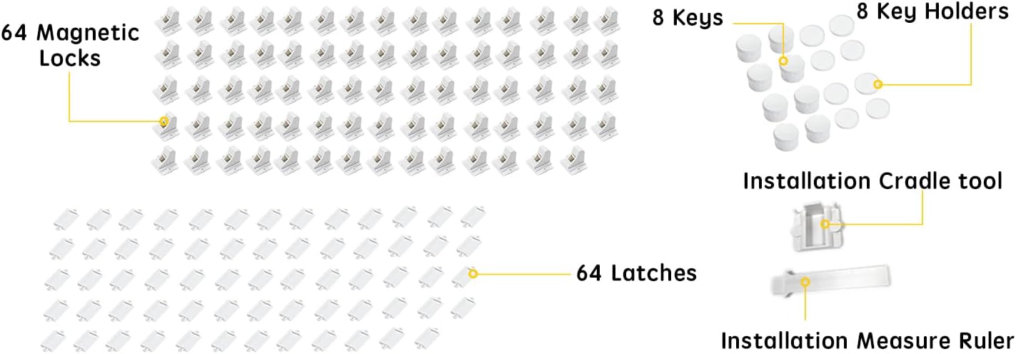 - Massive 64-Lock Value Kit: Secure every cabinet and drawer in your home with our most comprehensive set. This bulk package is perfect for large houses, daycares, or rental properties, providing complete coverage and peace of mind.