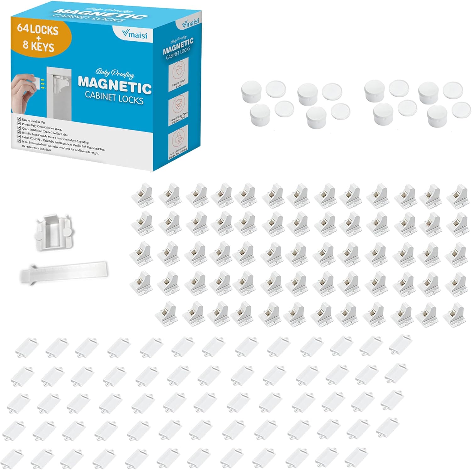 - Vmaisi Adhesive Magnetic Locks for Cabinets & Drawers (64 Locks and 8 Keys)