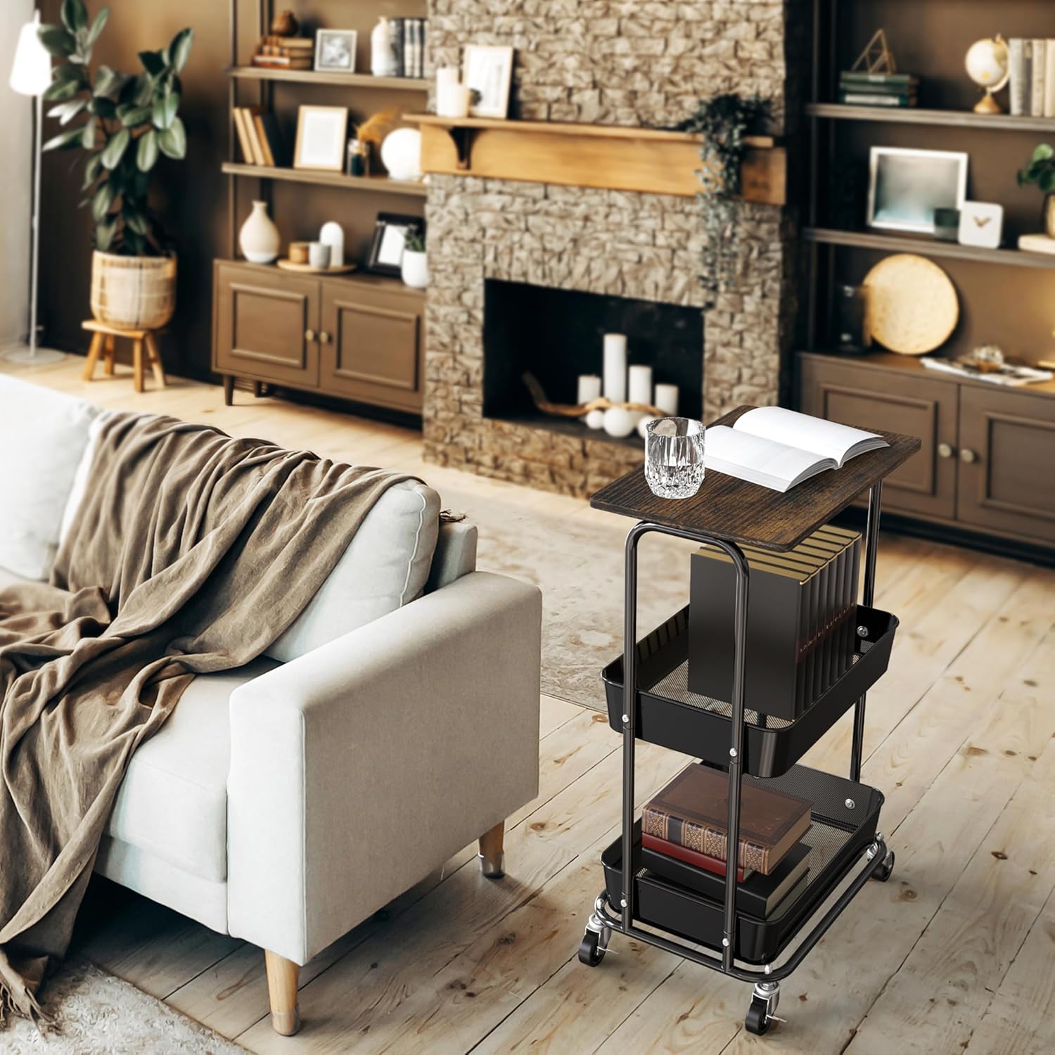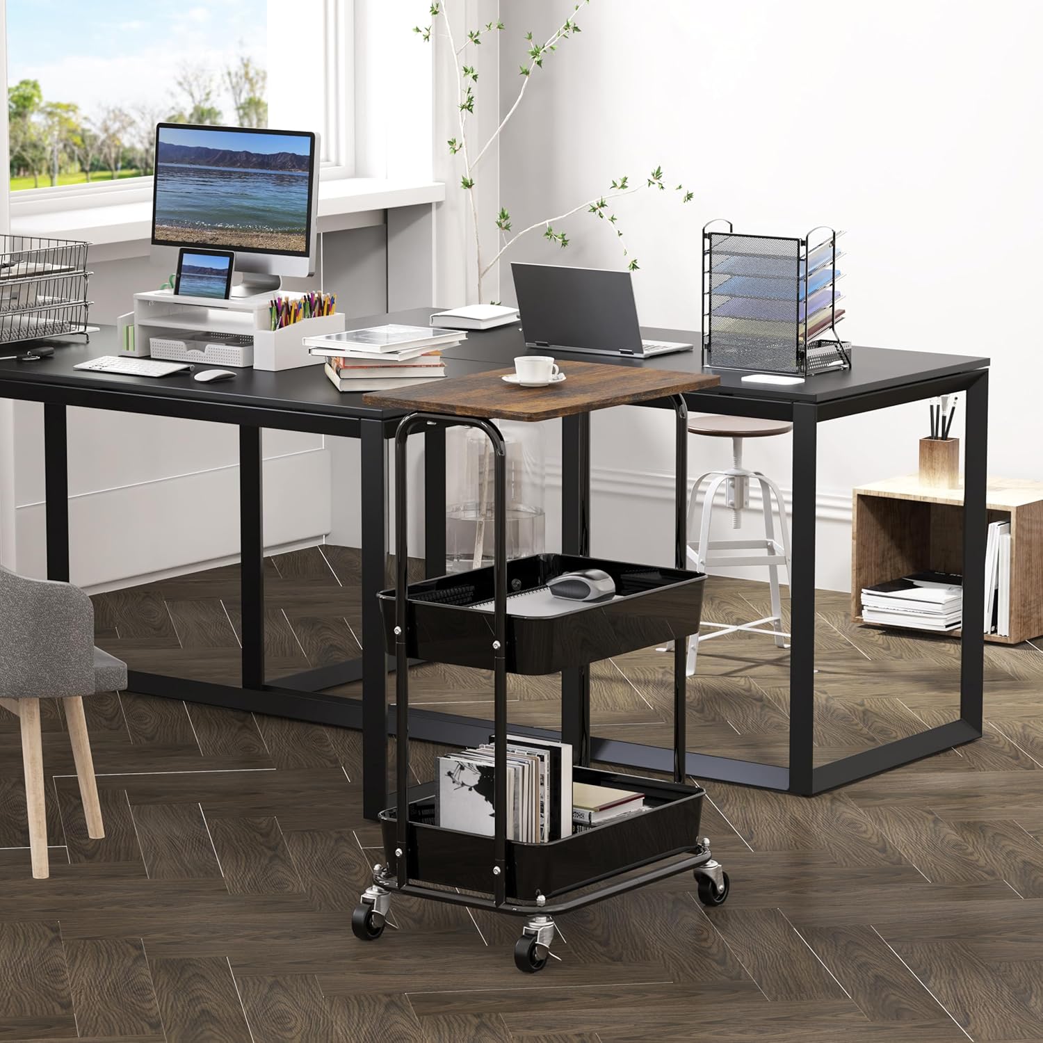 Simple Houseware 2-Tier Rolling Utility Cart with Lockable Wheels and Wood Top, Metal Storage Organizer Trolley for Kitchen, Bathroom, Office, Craft Room, Rustic Brown