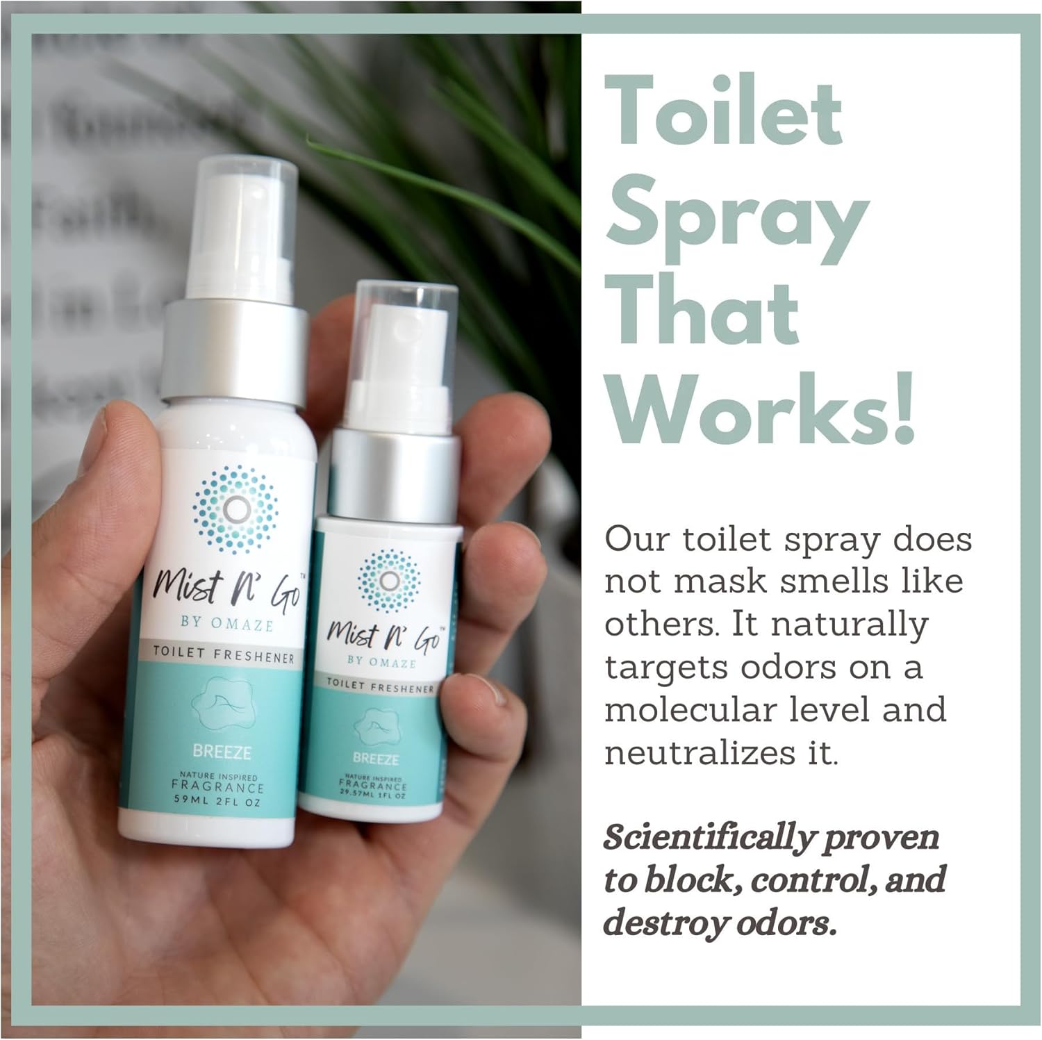 Mist N’ Go by Omaze Travel Bathroom Spray for Toilet Spray Odor Eliminator - Travel Toilet Spray for Bathroom Air Freshener Spray for Bathroom Deodorizer - Breeze Regular Size (2oz x2)