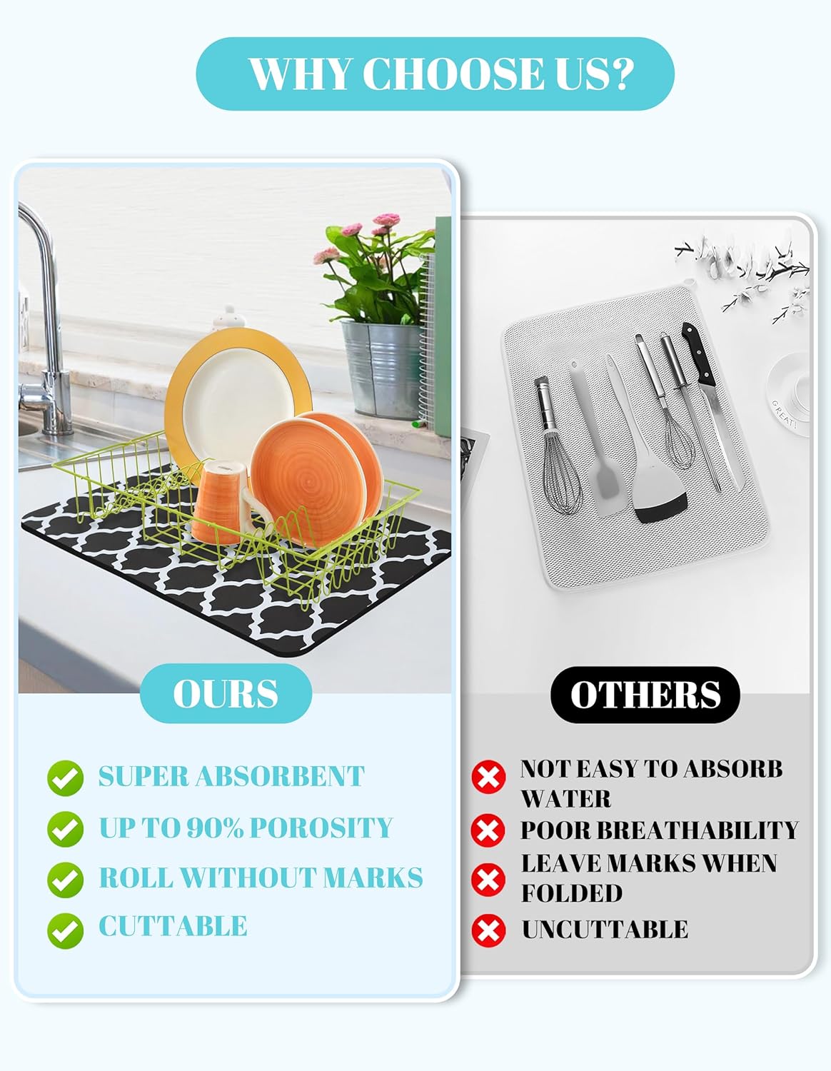 - DISH DRYING MAT: The drying mat is soft and absorbent, Always keep countertops clean and tidy. A practical kitchen mat accessory is definitely worth choosing.