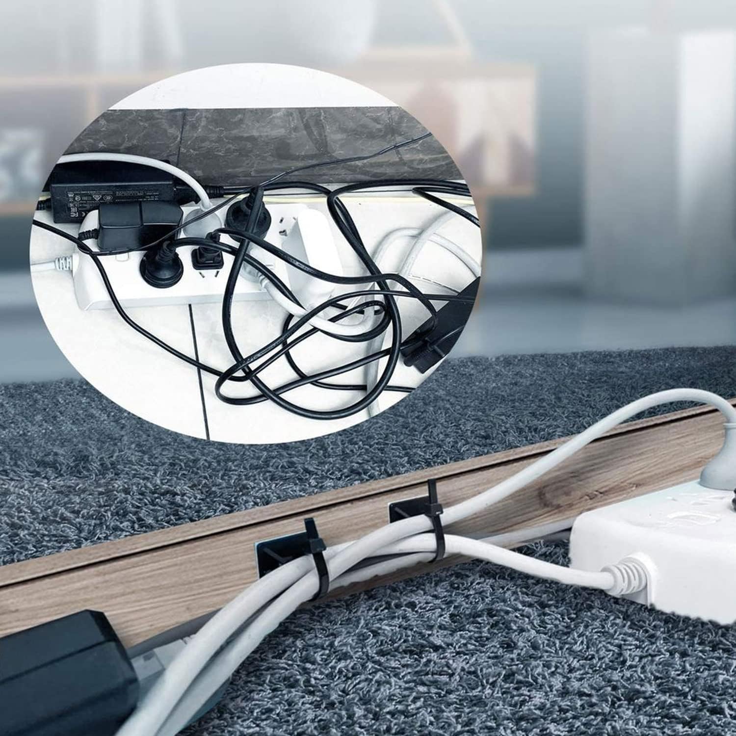 - Widely Used: This zip tie mount base can be used indoors or outdoors. Such as, indoors, our Wire Tie Holder works really well for guiding cords along the undersides of desks and tables, and can also be used along walls or other flat Surface .you can use it to hide cables and power cables to make your desktops tidy. Outdoors, you can use these Cable Tie mounts to secure the LED strips and some messy wiring.